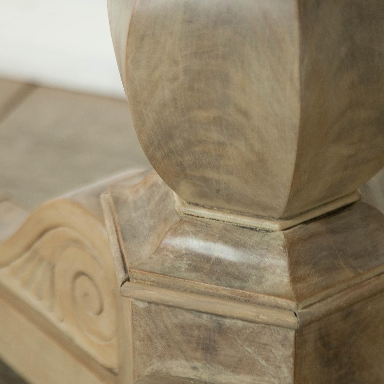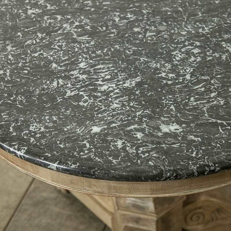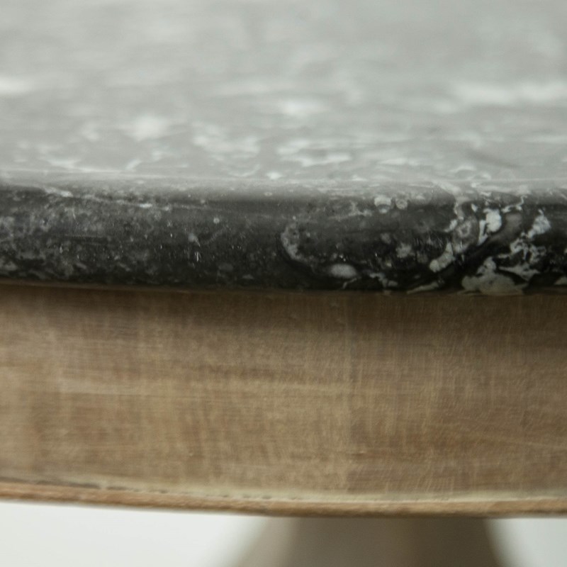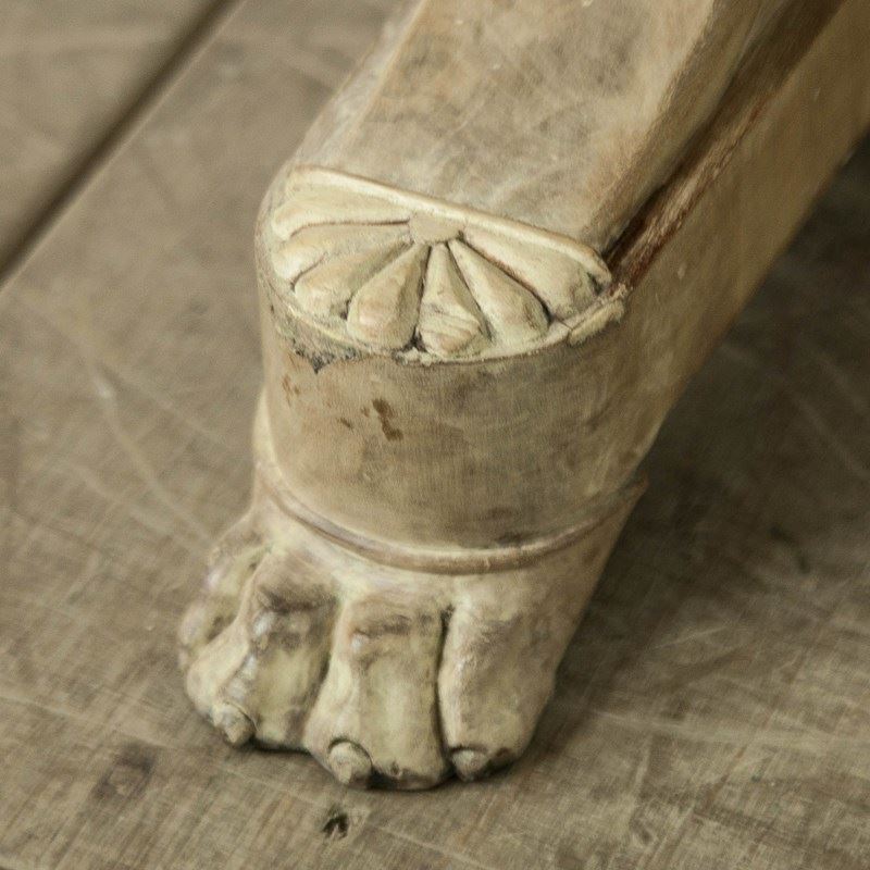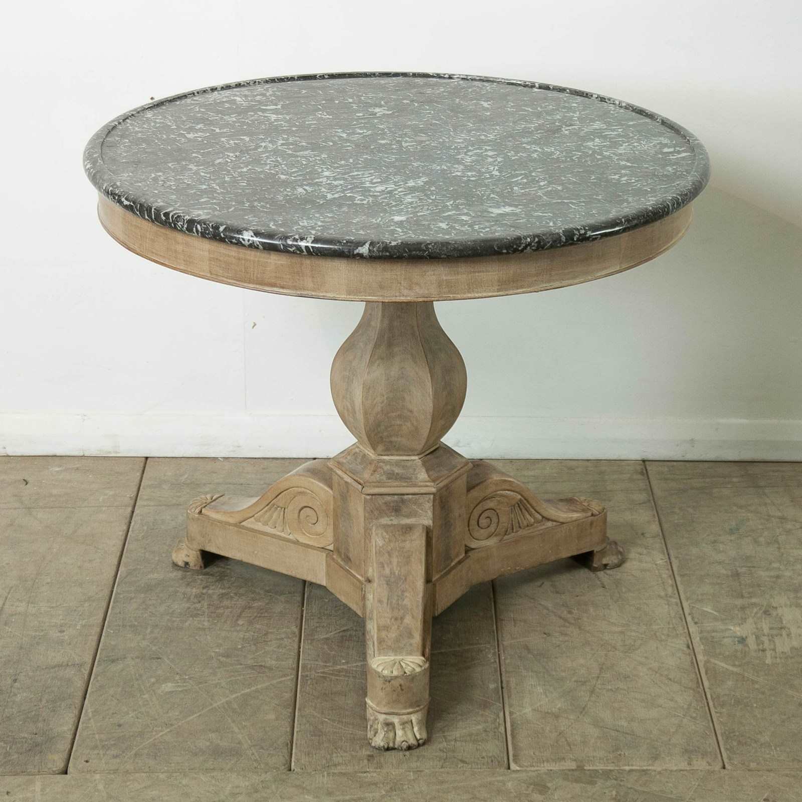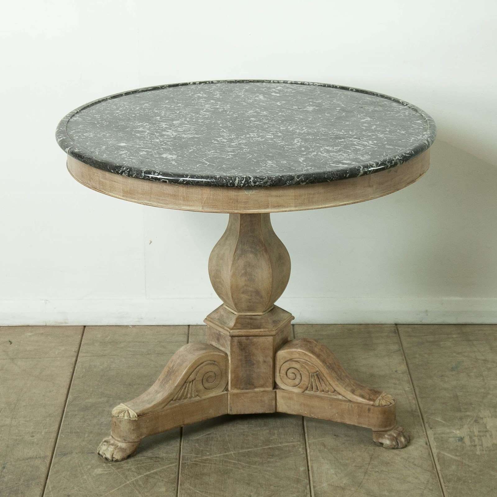 A 19th C French Gueridon, centre table. Bleached mahogany veneer with lion paw feet and a faceted pedestal, topped with a grey marble.