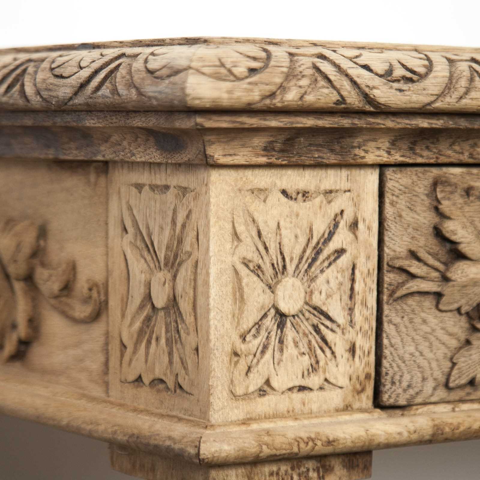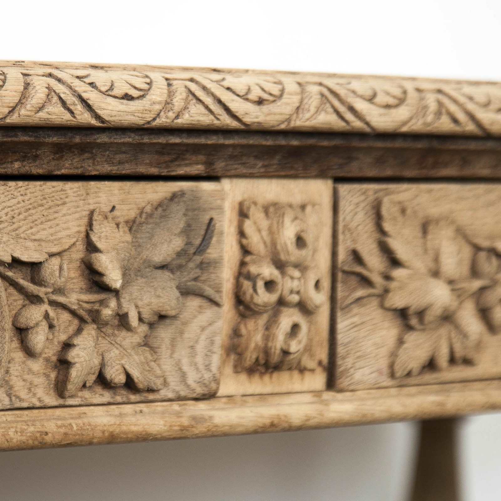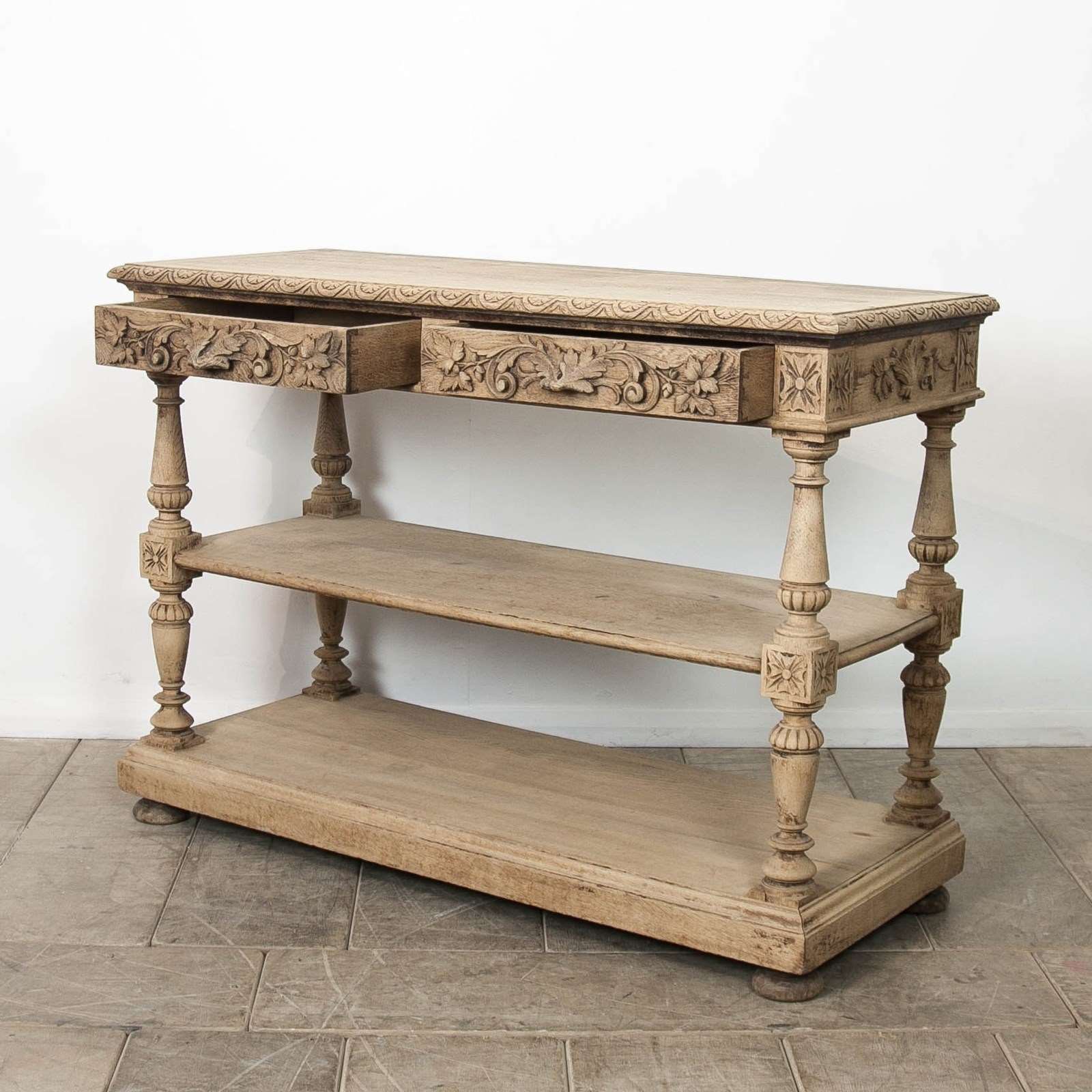 A carved, bleached oak, French 19th Century, Etagere. Comprising 2 drawers and 2 lower shelves.