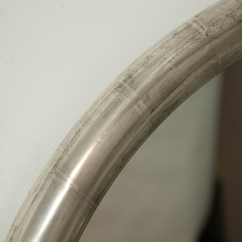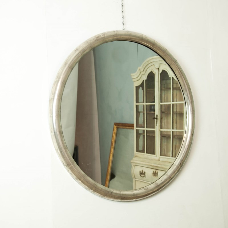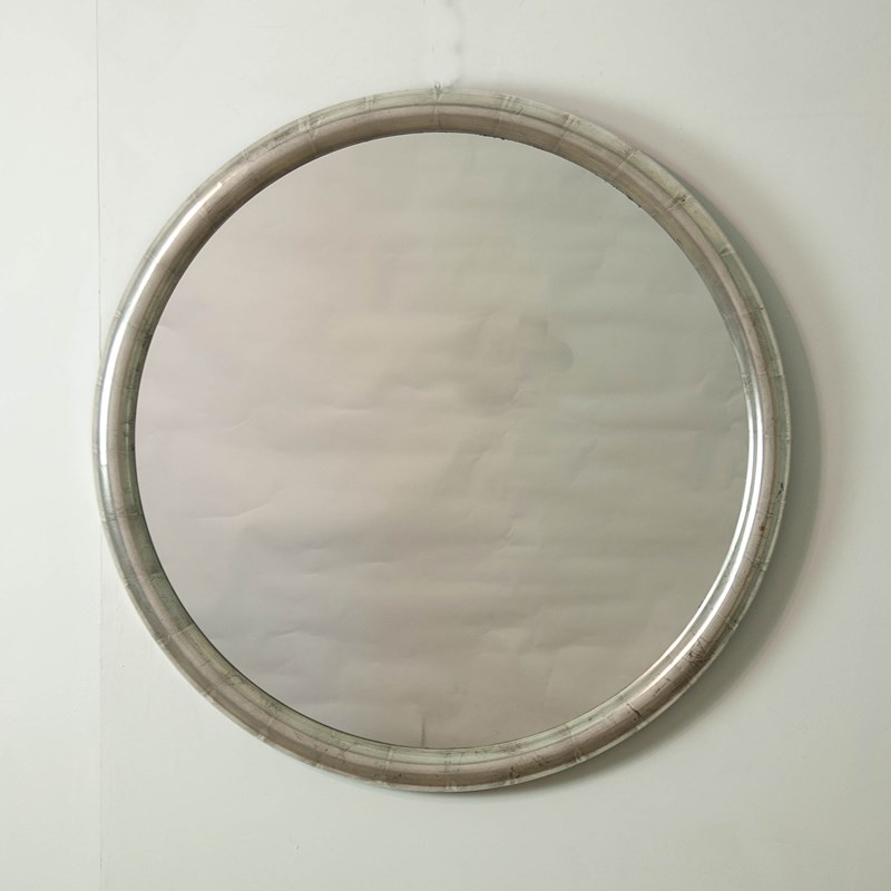 a contemporary silverleaf, round mirror with an antiqued mirror plate