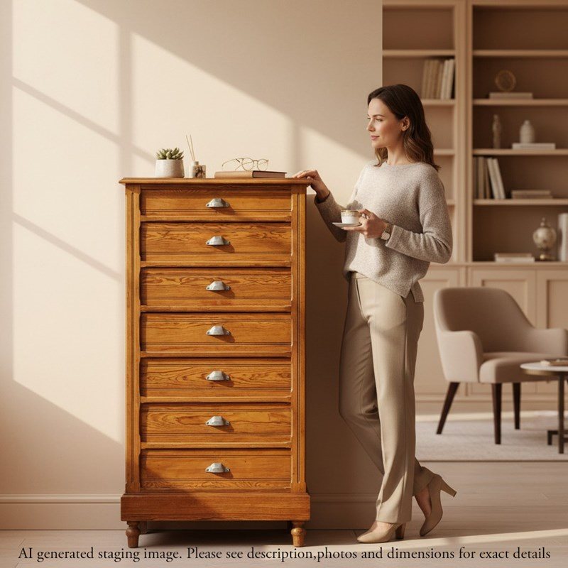 Antique c.1900 Pitch pine Wellington Chest of Drawers – Large Capacious Form, 7 Drawers