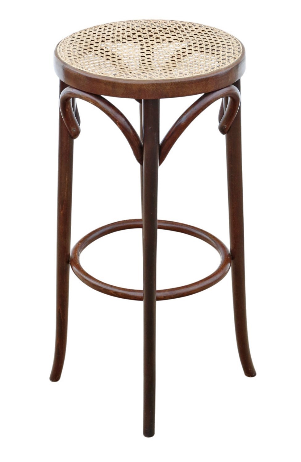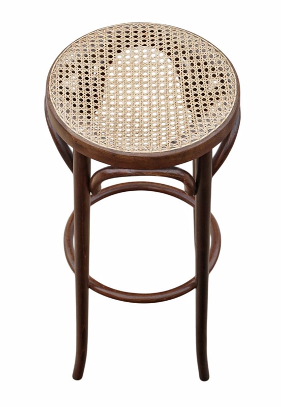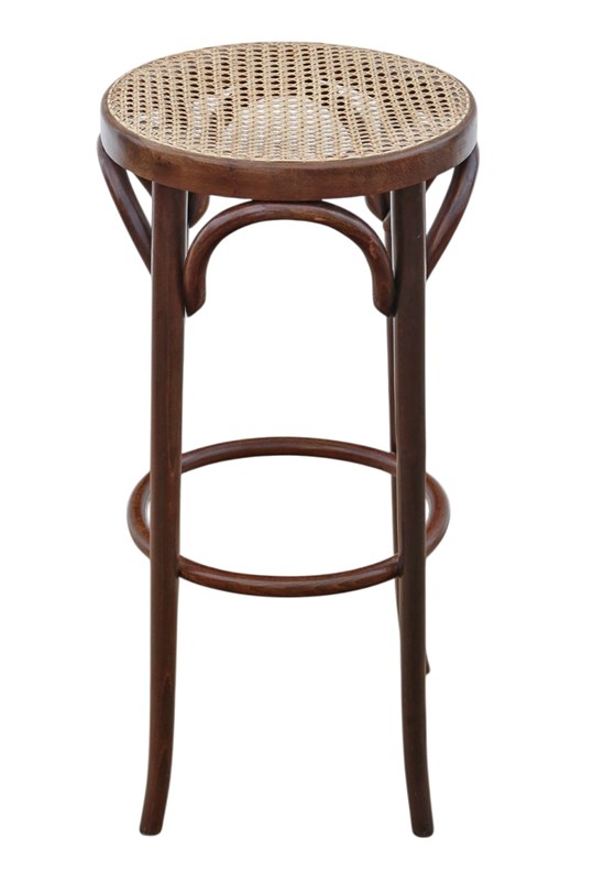 Antique c.1925 Bentwood High Tall Stool – Fine Quality Cane Seat