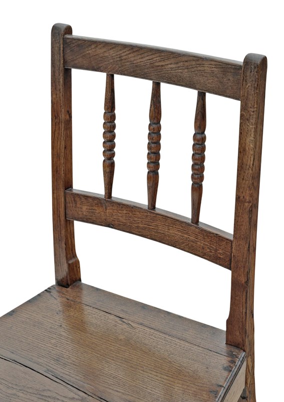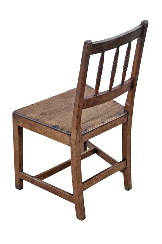 A rare decorative find, ideal for a dining room, kitchen, or country house interior, featuring attractive bobbin-turned backs with a simple, clean design. These 18th-century oak chairs are full of age, charm, and character, with lovely colour and patina, making them both practical and decorative statement pieces.