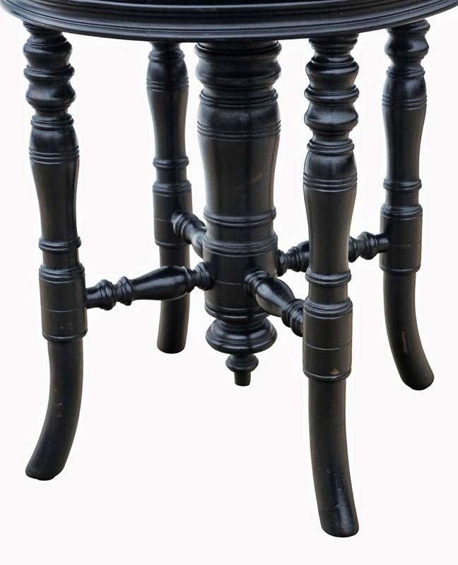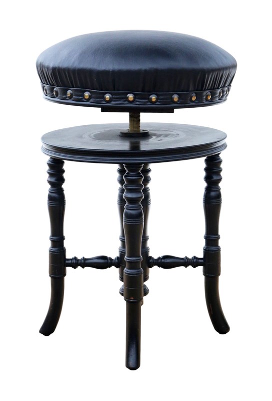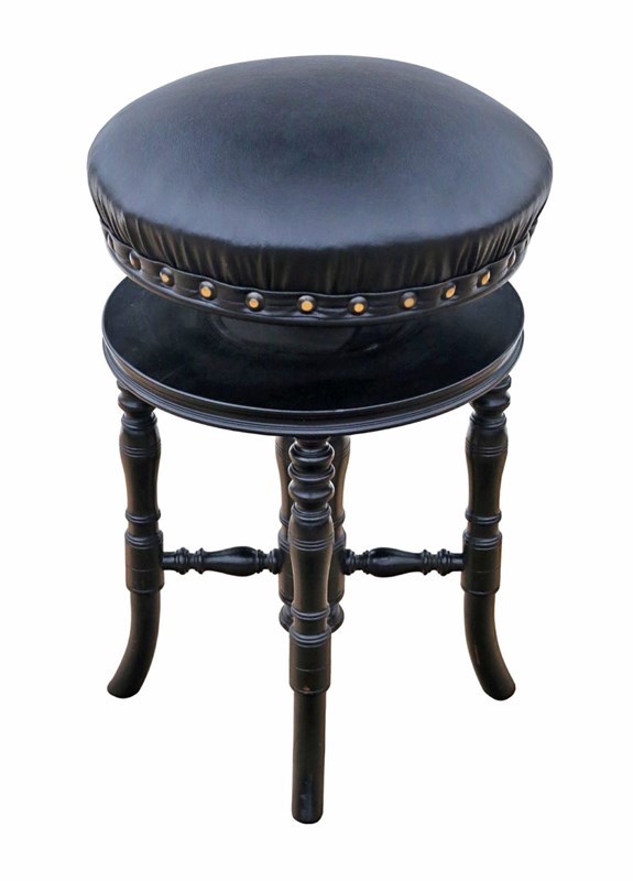 Antique 19th Century Ebonised Mahogany Revolving Adjustable Piano Stool – Fine Quality