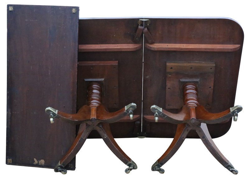Antique 19Th Century Georgian Mahogany Extending Dining Table – Large Twin Pedes