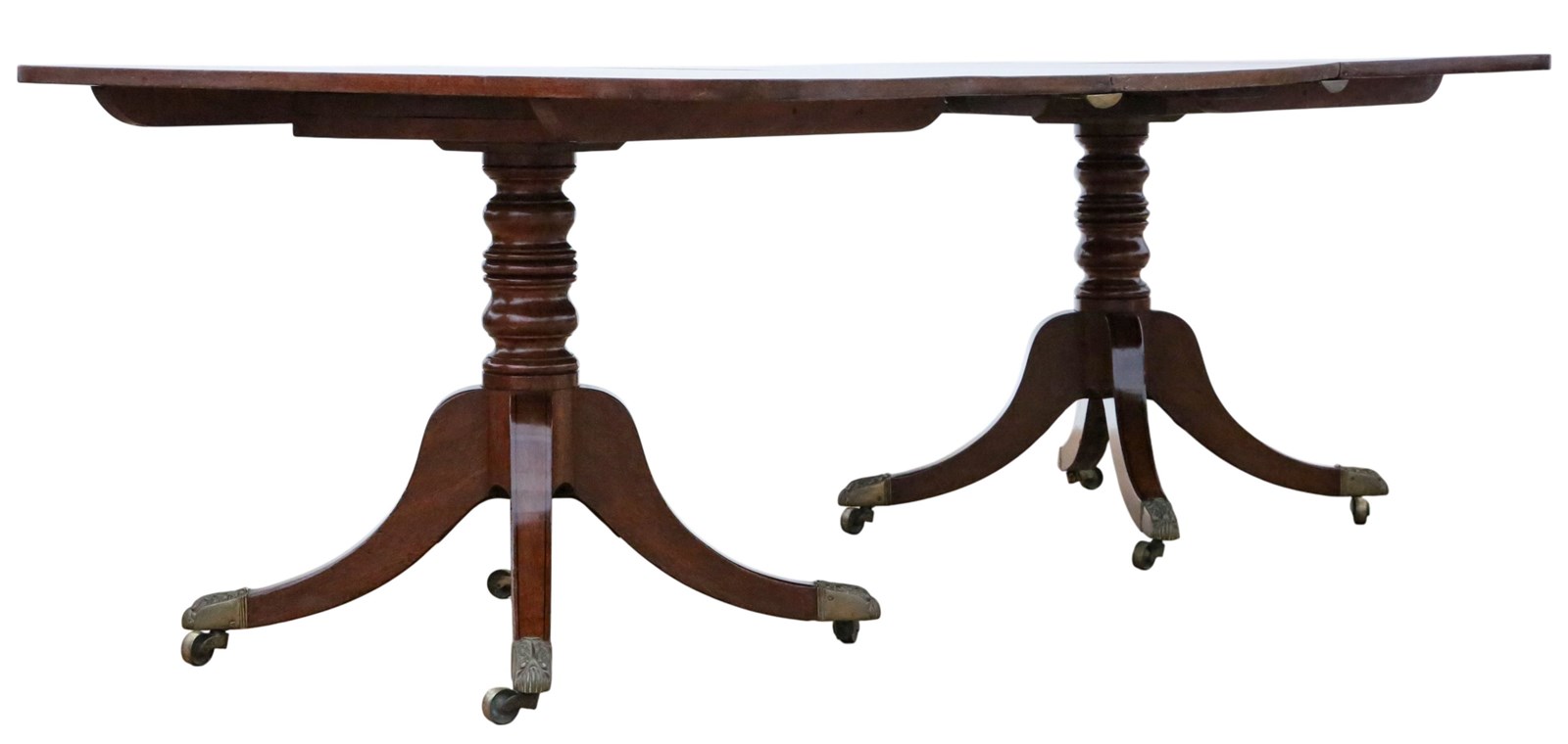 Twin pedestal legs with brass table forks and decorative brass castors