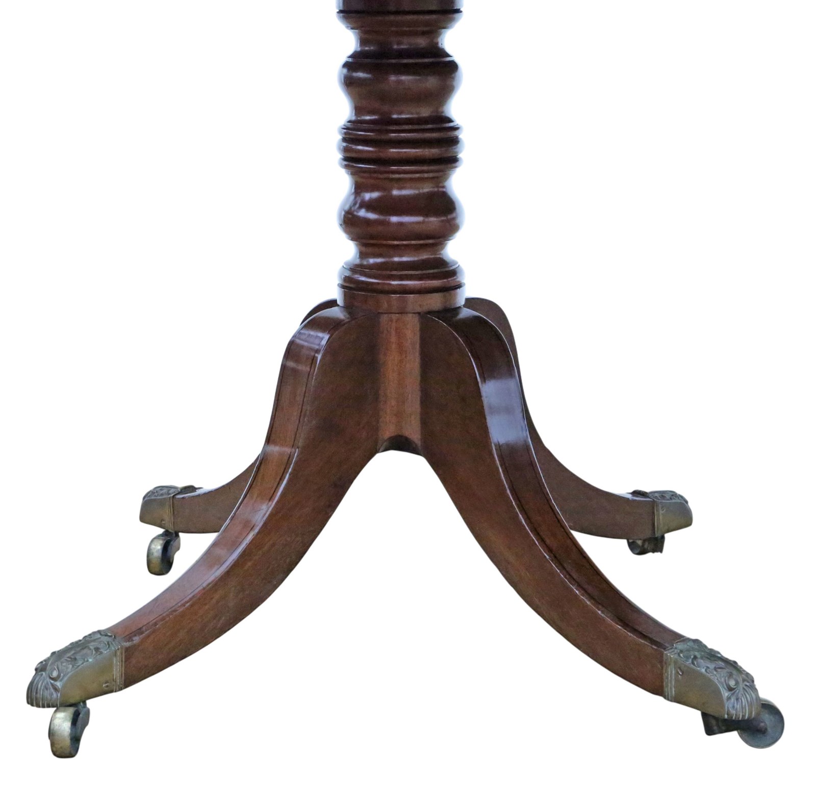 Brass castors show wear as one would expect from quality period furniture, but remain functional and fully support the table.