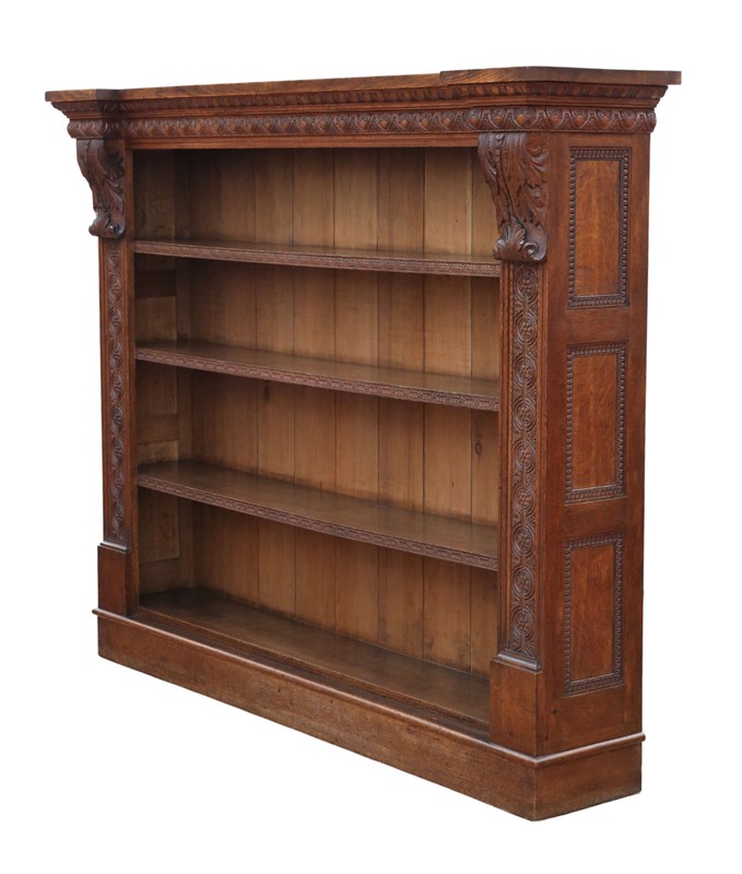 Antique 19Th Century Large Carved Oak Bookcase – Fine Quality, Country House
