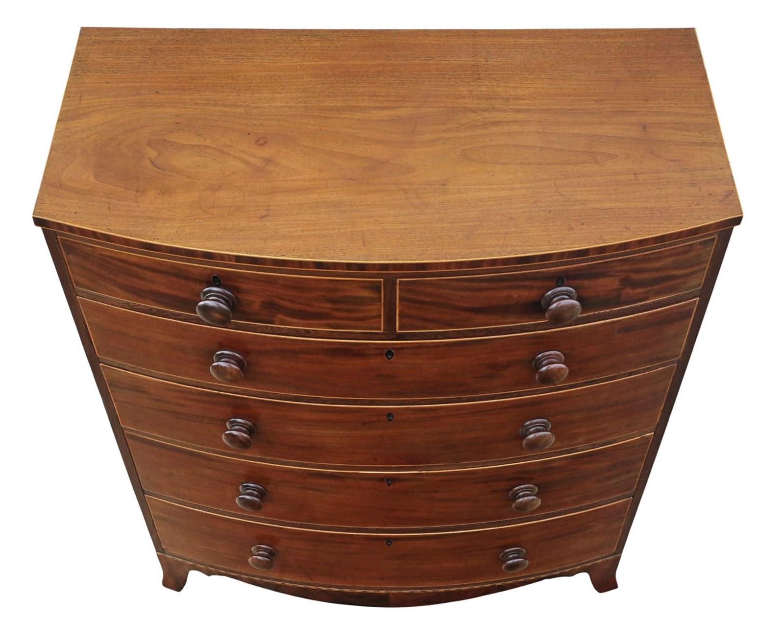 Antique 19Th Century Mahogany Bow Front Chest Of Drawers- Fine Quality Gillows