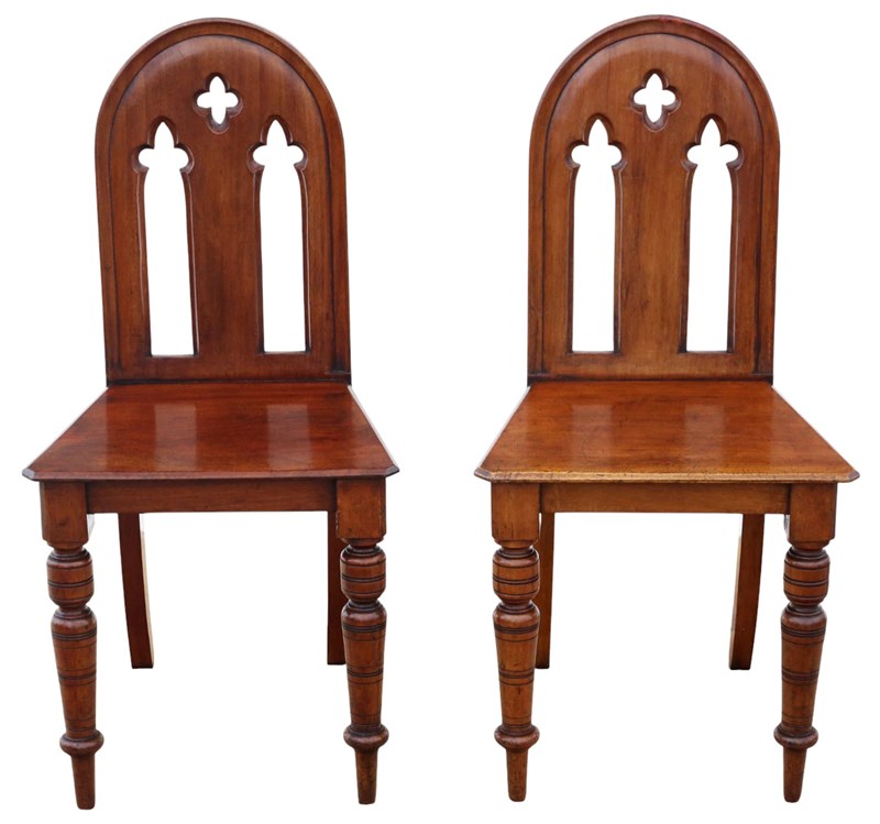 Antique 19Th Century Pair Of Mahogany Gothic Hall Chairs – Fine Quality Chairs