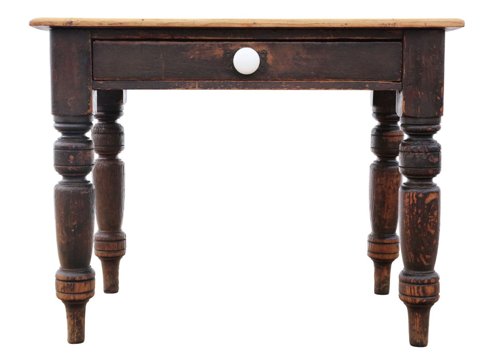 Antique 19Th Century Pine Kitchen Or Writing Table With Drawer – Fine Quality