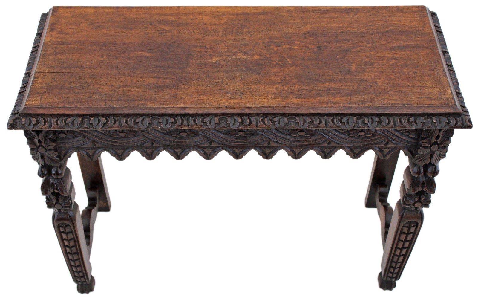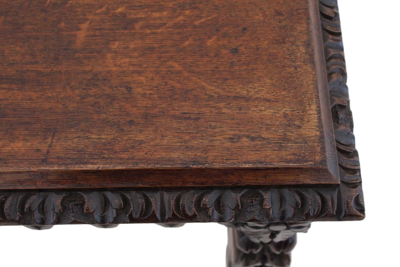 Antique 19Th Century Victorian Heavily Carved Oak Side Writing Desk Table