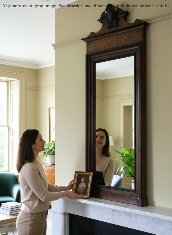 A striking 19th-century tall mirror, beautifully crafted in walnut with a warm, aged patina. Full of charm and character, this rare decorative piece would make a wonderful statement in any setting. Its elegant rectangular inlay and crested top add a subtle, refined flourish, while the generous height allows it to be used either as a floor or wall mirror.