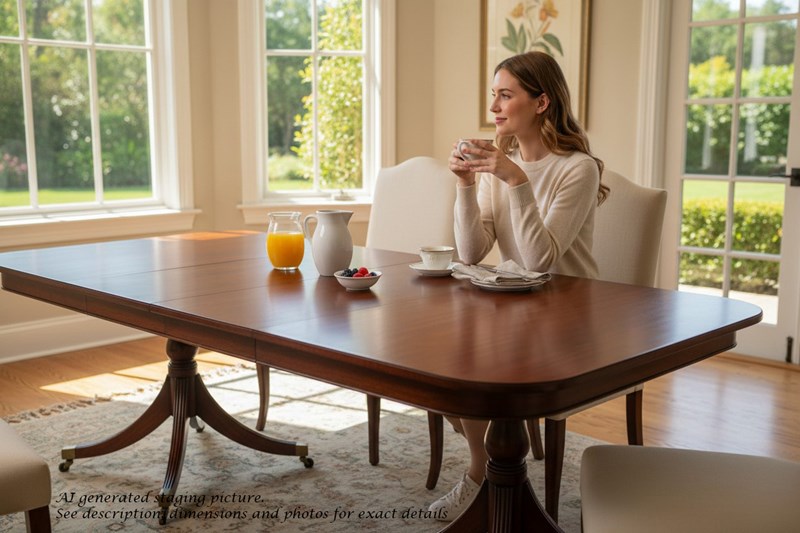 Antique very large fine quality ~8'9" mahogany extending dining table double pedestal late 19th Century.