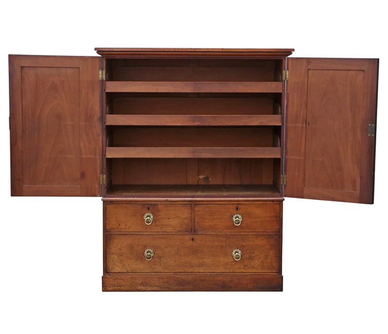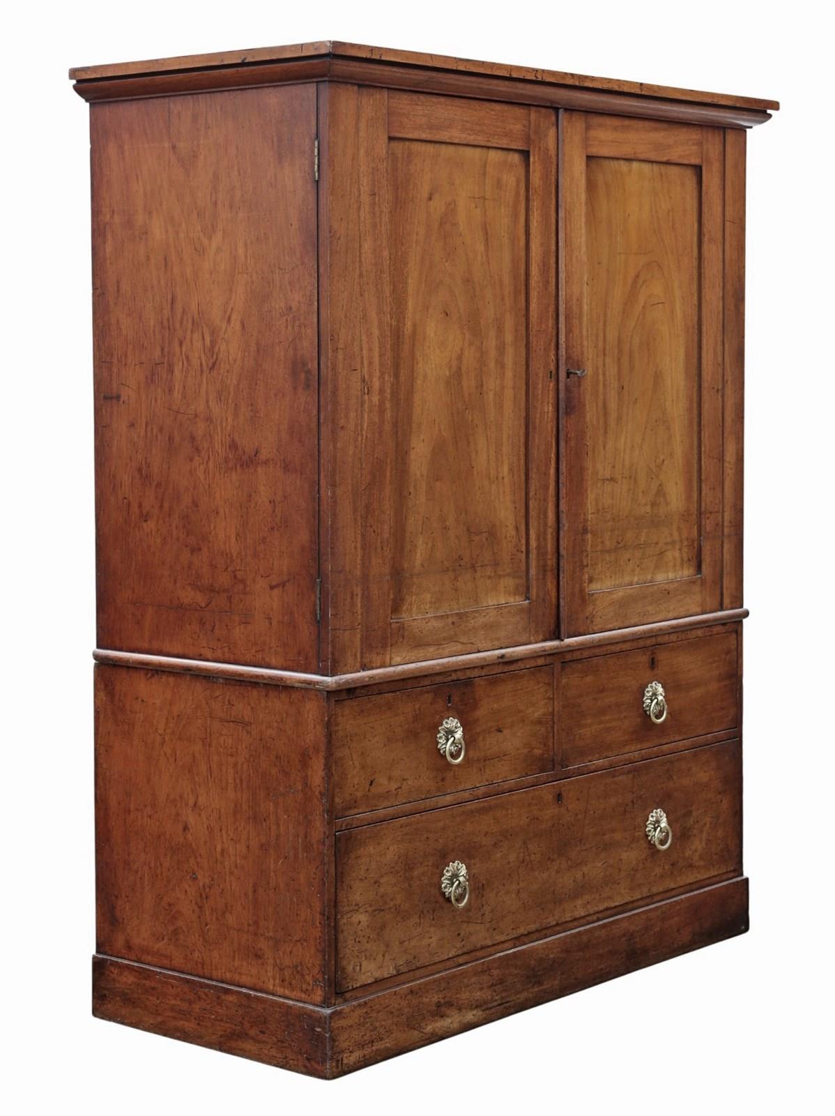 Antique c.1800 Georgian Mahogany Linen Press Wardrobe Cupboard Chest – Fine Quality