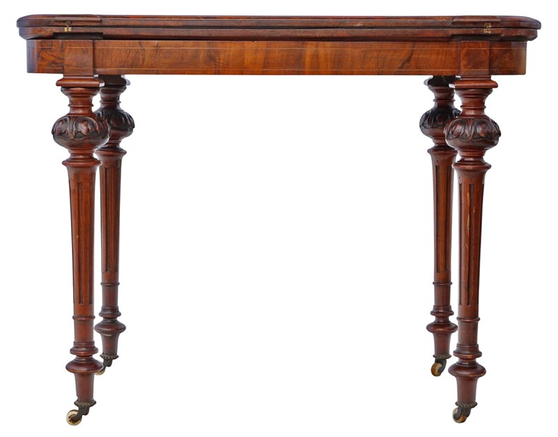 Antique c.1880 Victorian Mahogany & Burr Walnut Card Table – Fine Quality 19th Century Games Table