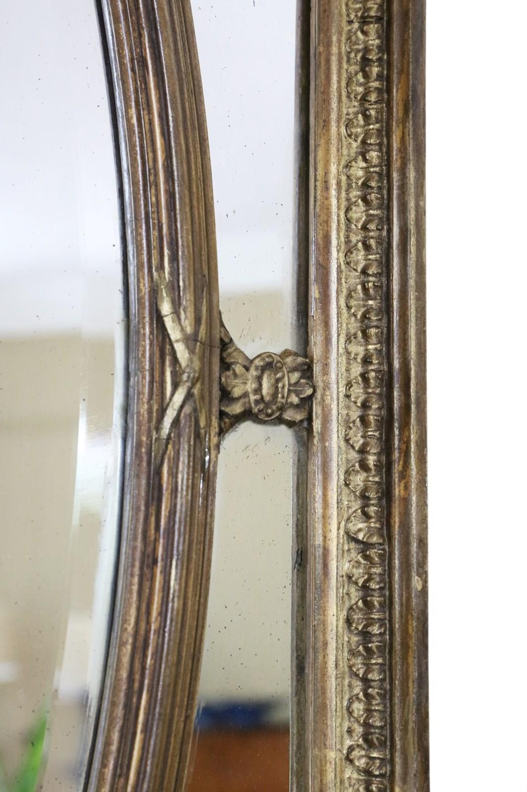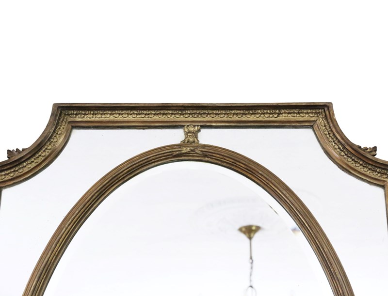 Antique c.1900 Gilt Cushion Overmantle Wall Mirror with Bevel Edge Glass