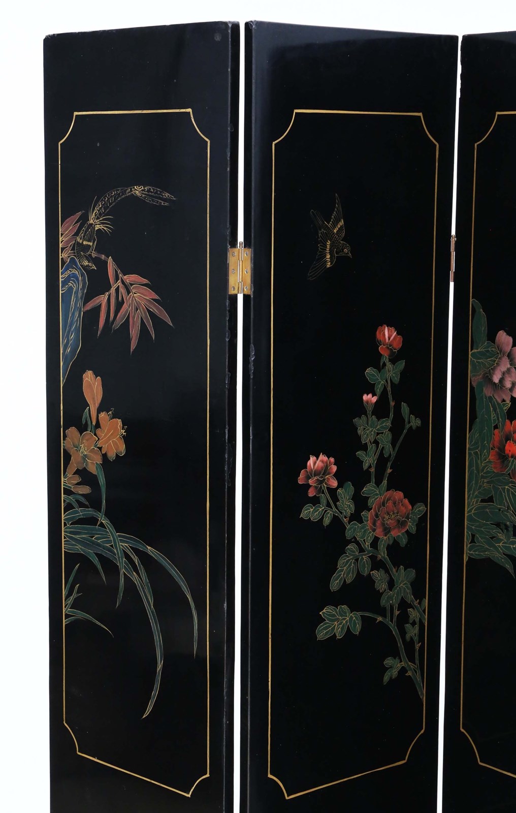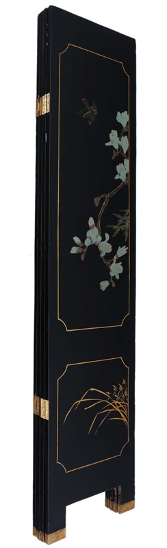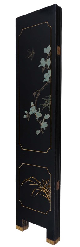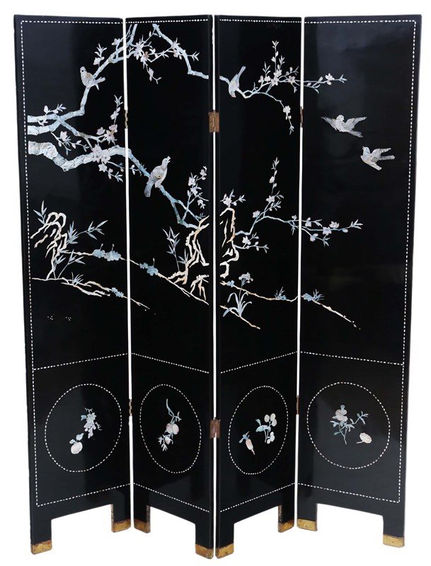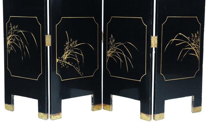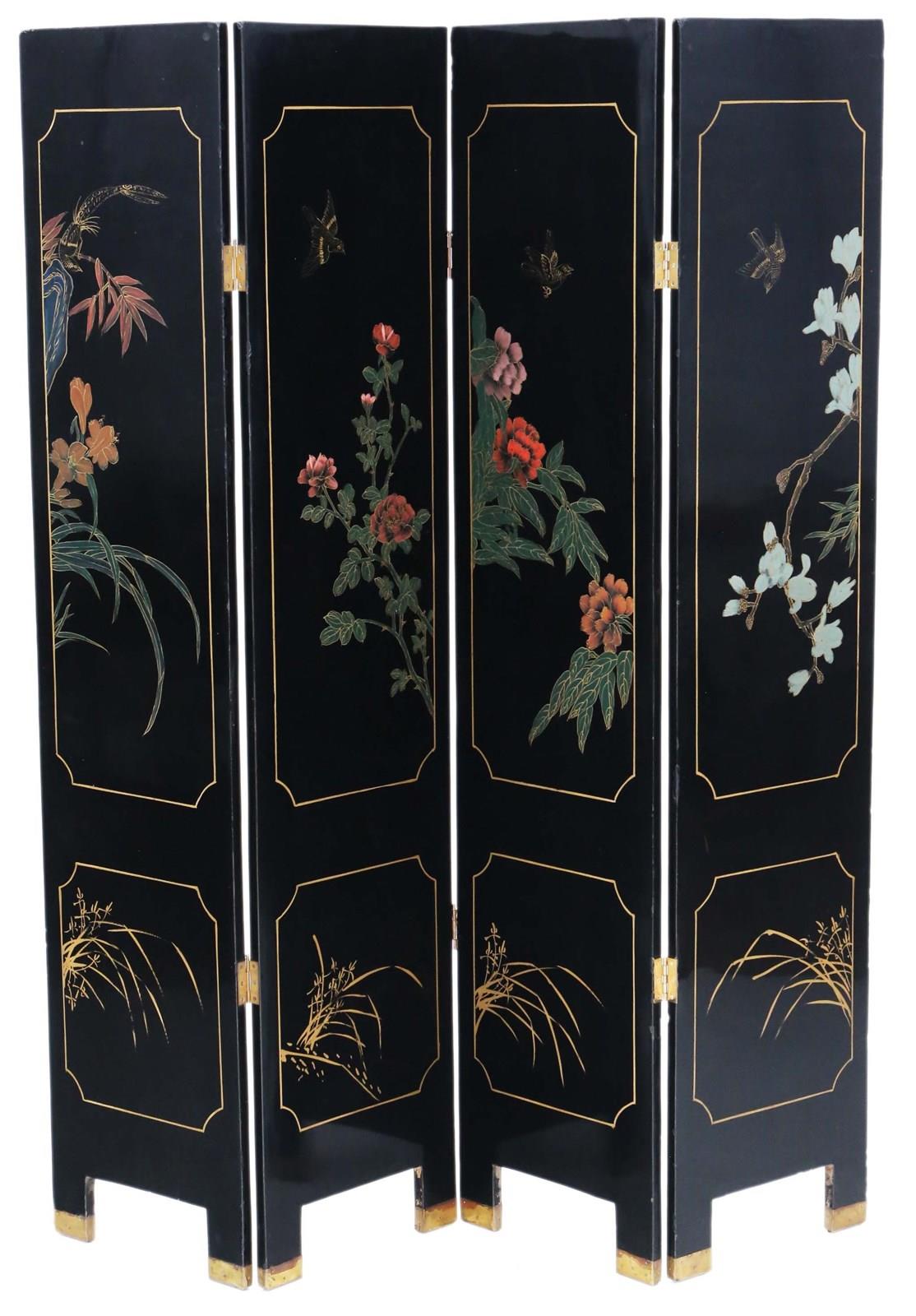 Antique c.1900 Large Victorian Chinoiserie Black Lacquer Papier Mâché Dressing Screen - Fine Quality Room Divider