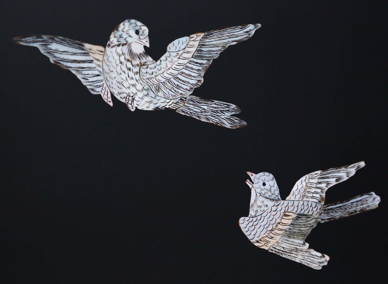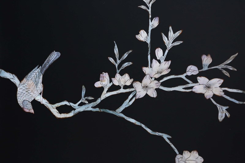 Decorated panels: painted on one side, inlaid on the other