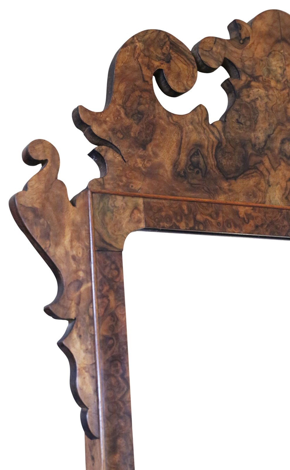 Antique c.1910 Georgian Revival Burr Walnut Fret-Cut Overmantle / Wall Mirror – Fine Quality