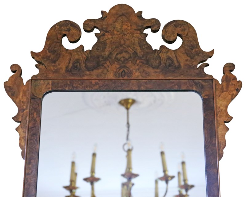 Antique C.1910 Georgian Revival Burr Walnut Fret-Cut Overmantle / Wall Mirror –