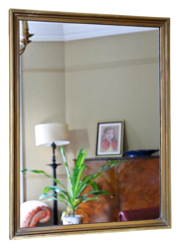 This attractive early 20th-century gilt overmantle wall mirror displays lovely age, colour, and finish. Full of charm and character, this rare decorative find would make a focal point in the right setting. The mirror features a simple, elegant slim gilt frame, which gives it a refined and versatile appearance suitable for both traditional and contemporary interiors.