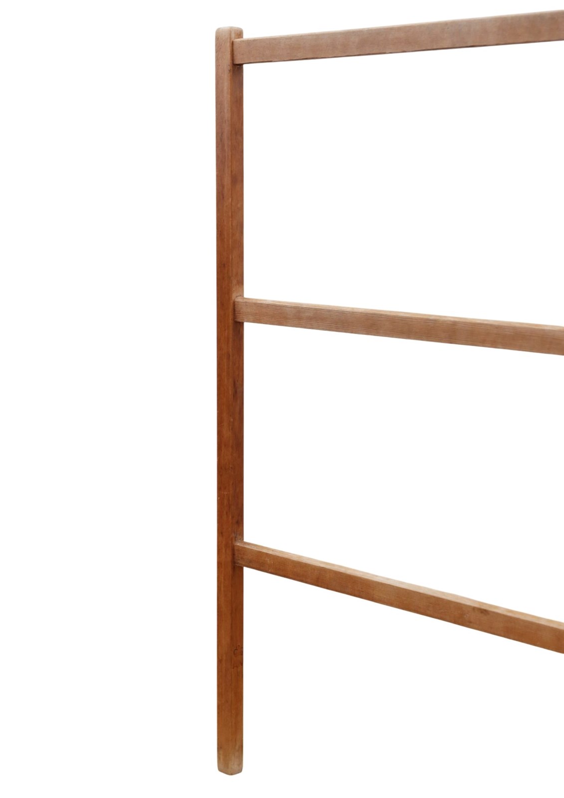 A charming c.1920 clothes horse / towel rail stand that is rich in charm and character. This rare decorative find would make a wonderful addition to the right setting, combining practical use with an understated period aesthetic. Its simple softwood construction and honest design reflect its early 20th-century utility and appeal.