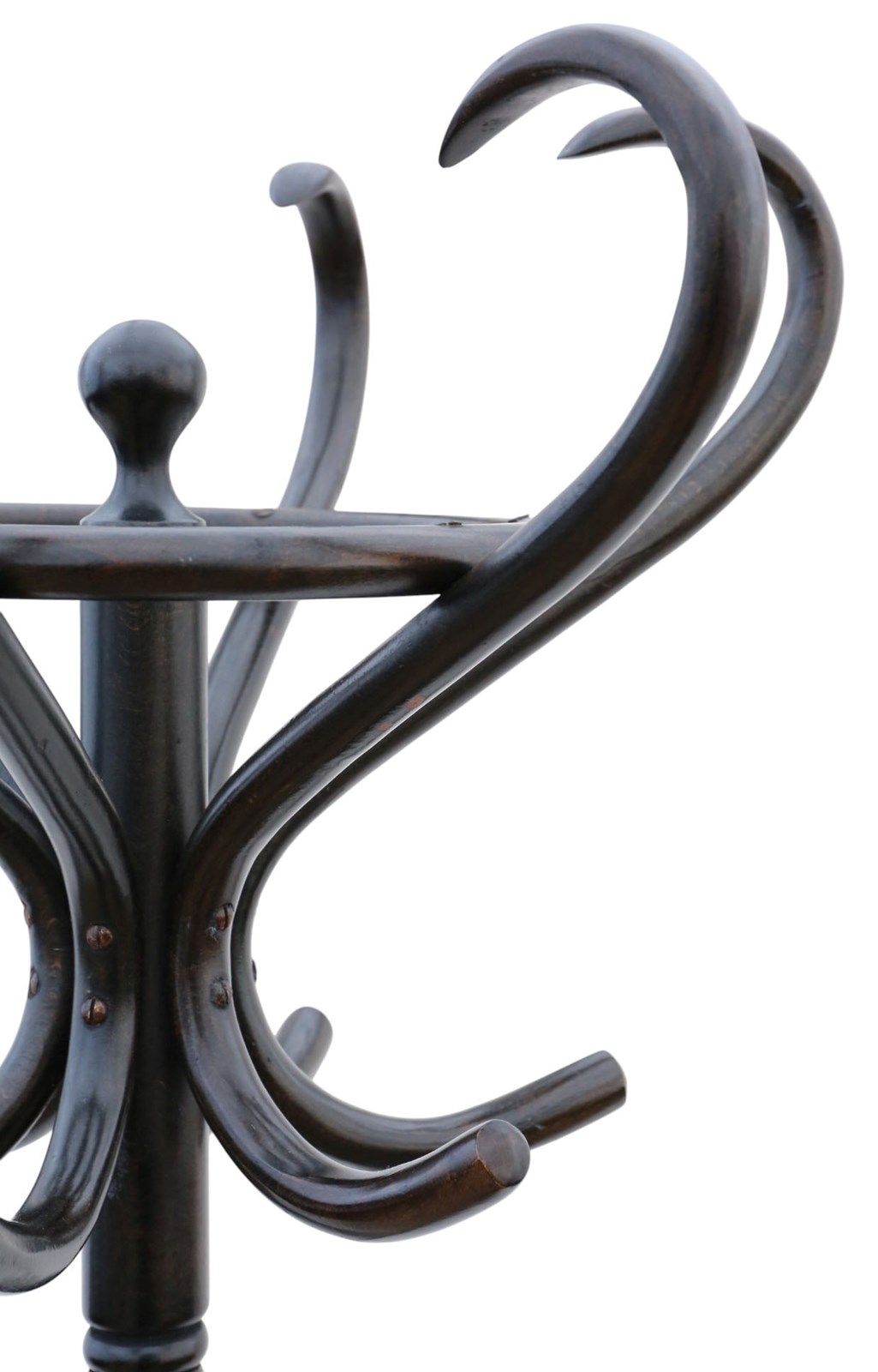 An early 20th-century bentwood hall stand with attractive age, colour, and patina. Full of authentic charm and character, this rare decorative find has a lovely patinated ebonised finish and a rotating top section, ideal for a hallway, entrance, or period interior.