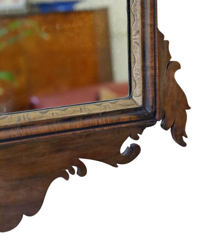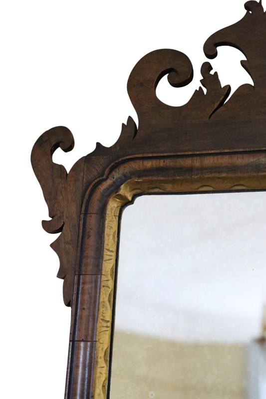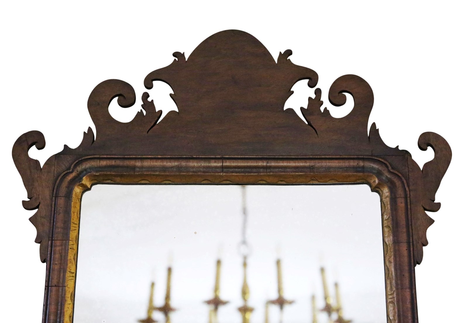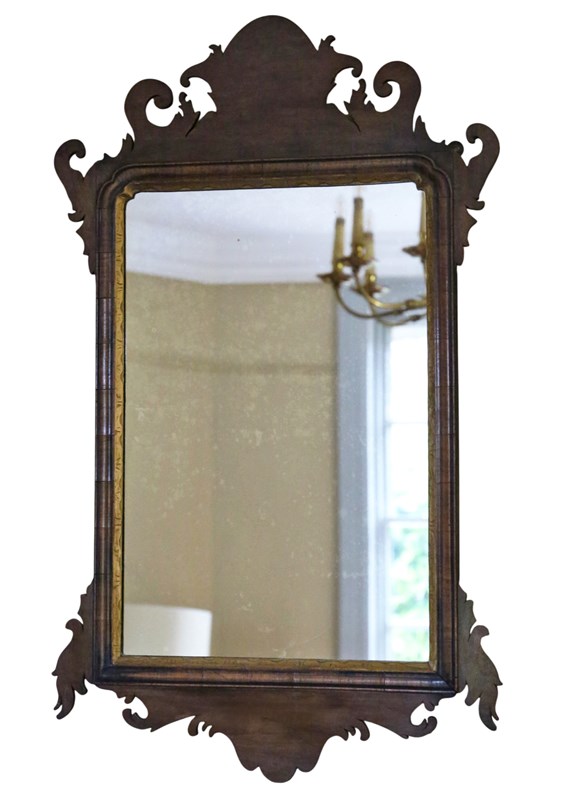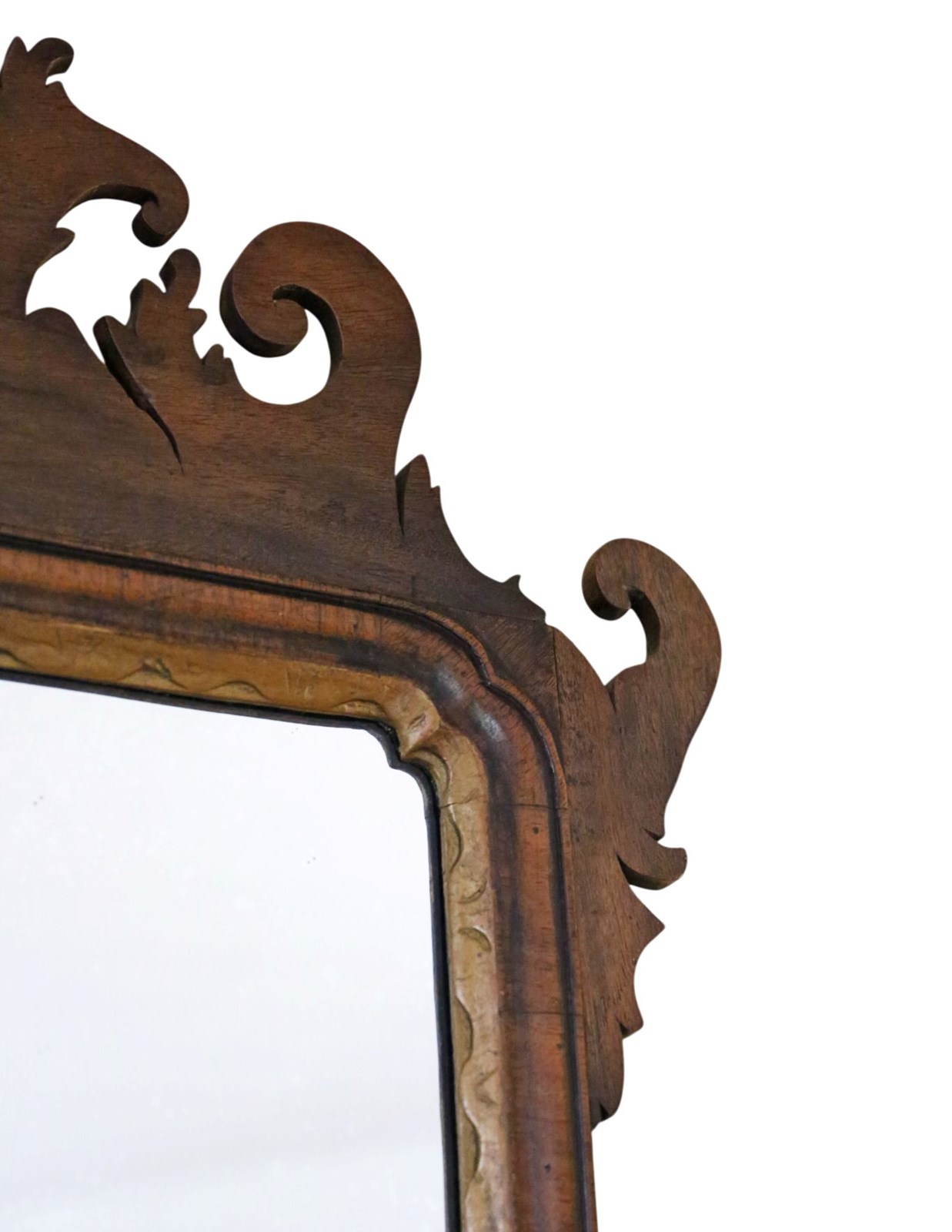 Antique C.1920 Georgian Revival Walnut And Gilt Fret Cut Overmantle/ Wall Mirror