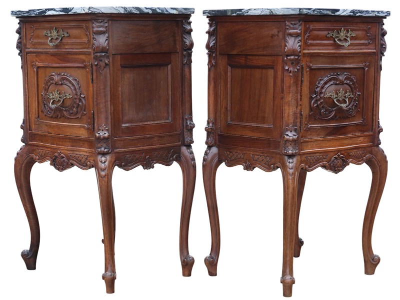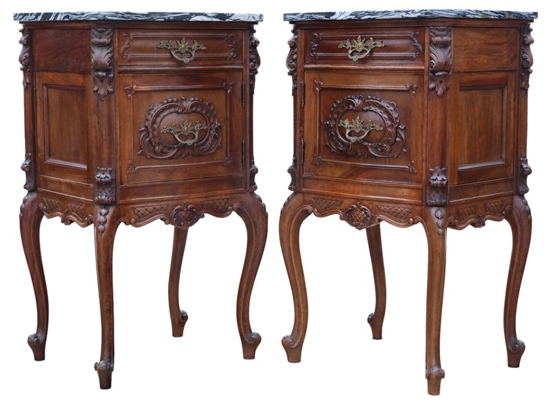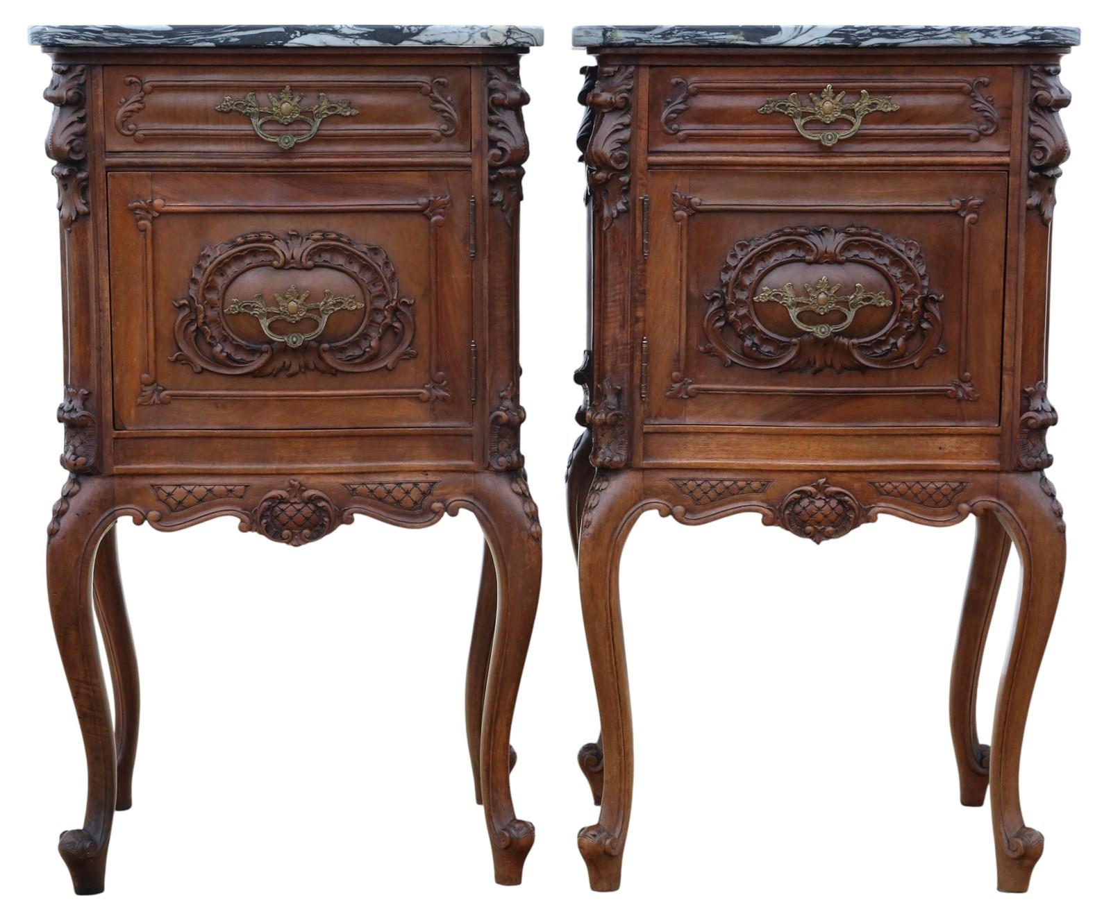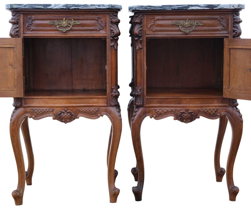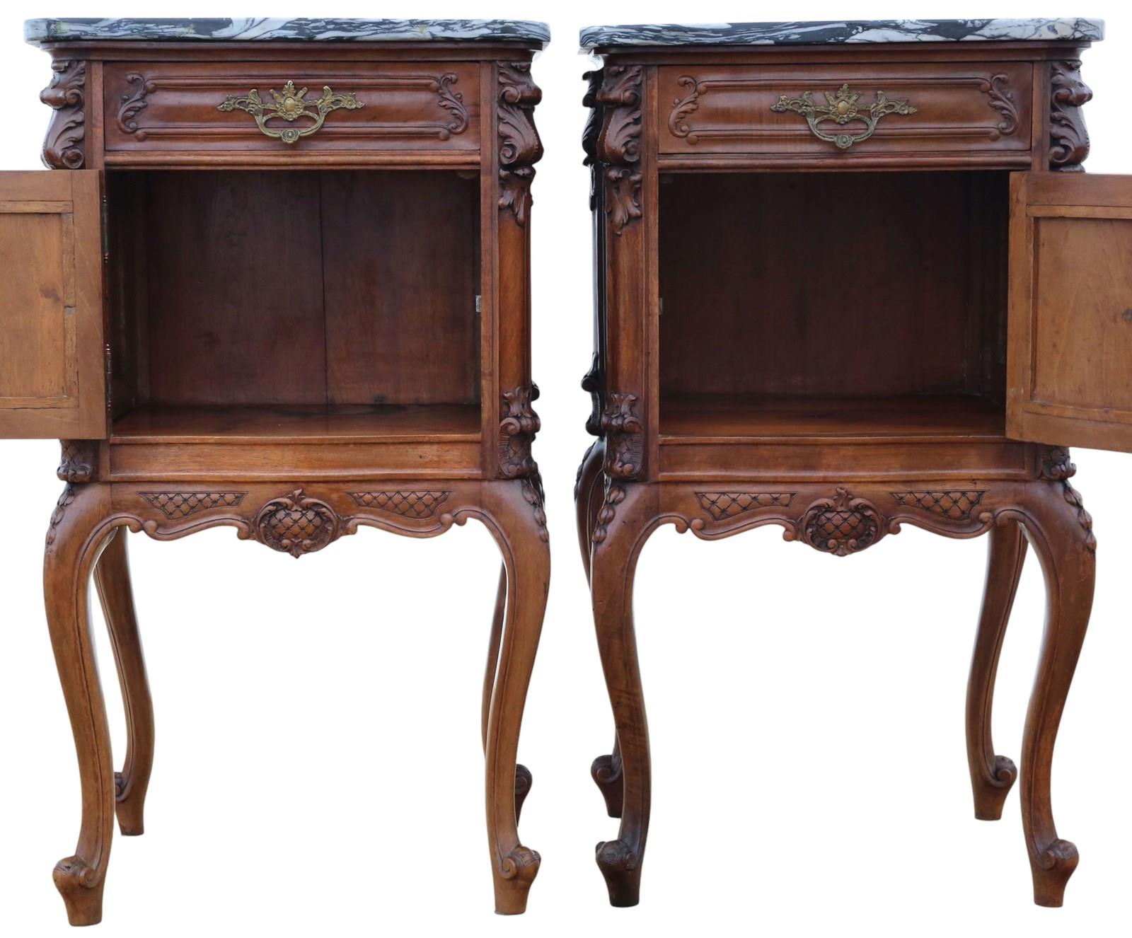 Antique c.1920 Italian Walnut & Marble Bedside Table Cupboards – Fine Quality Pair