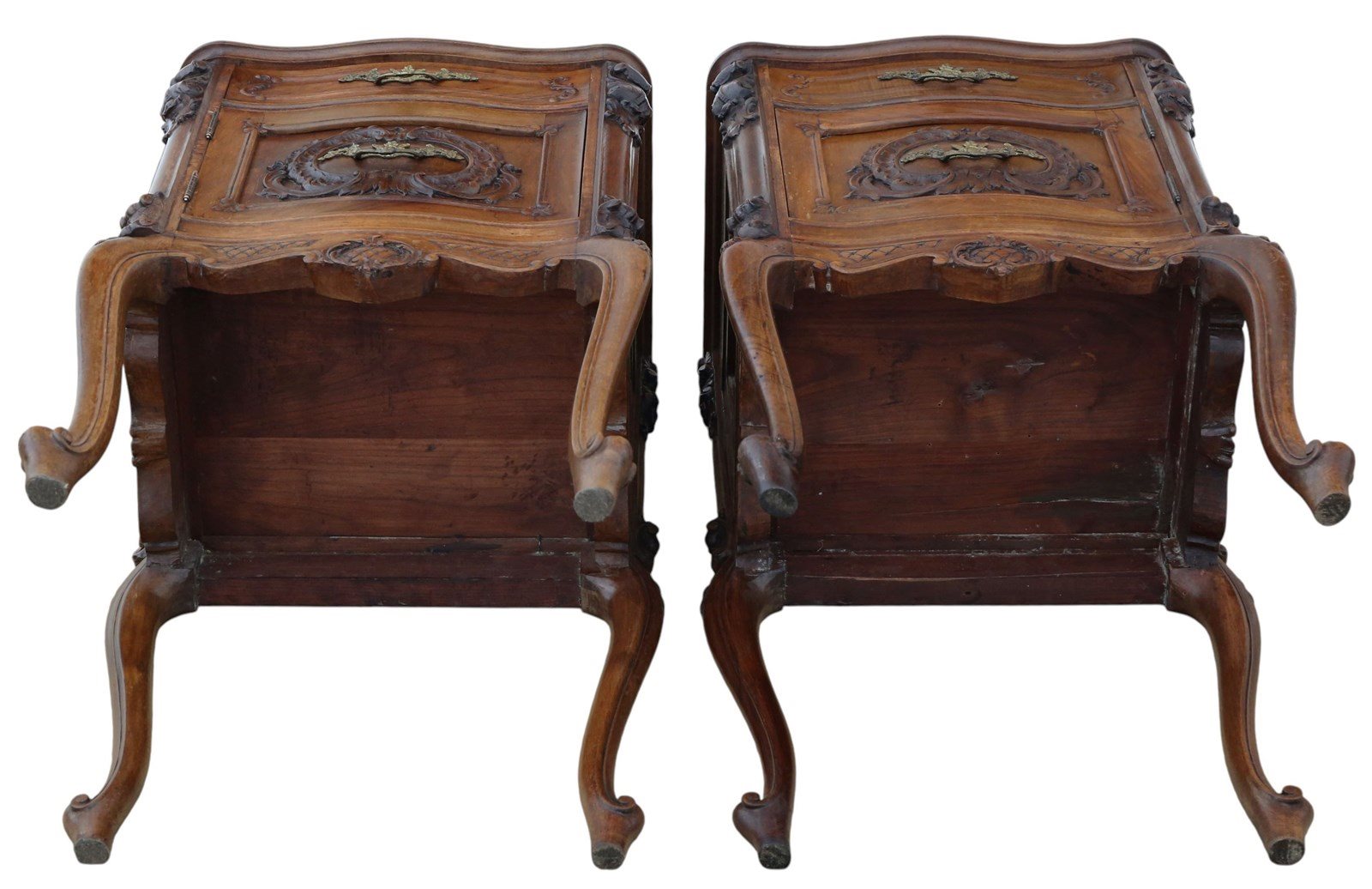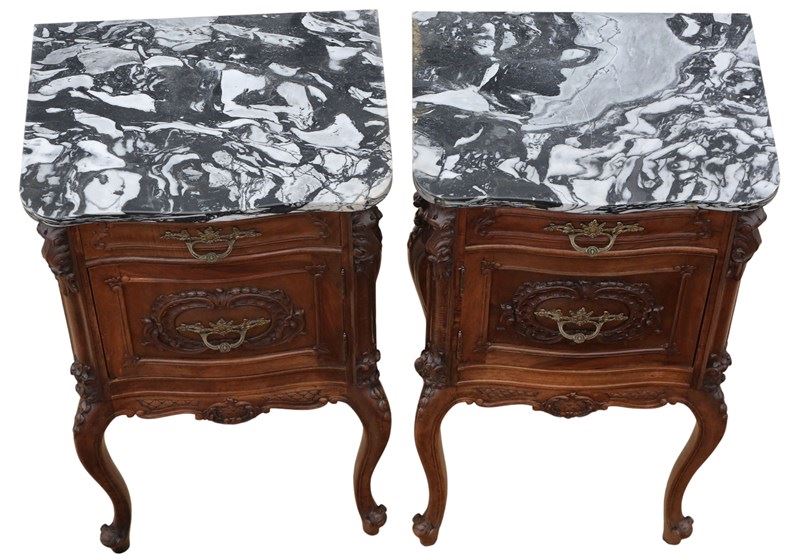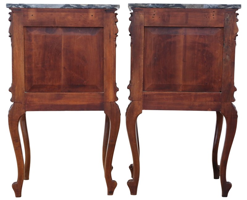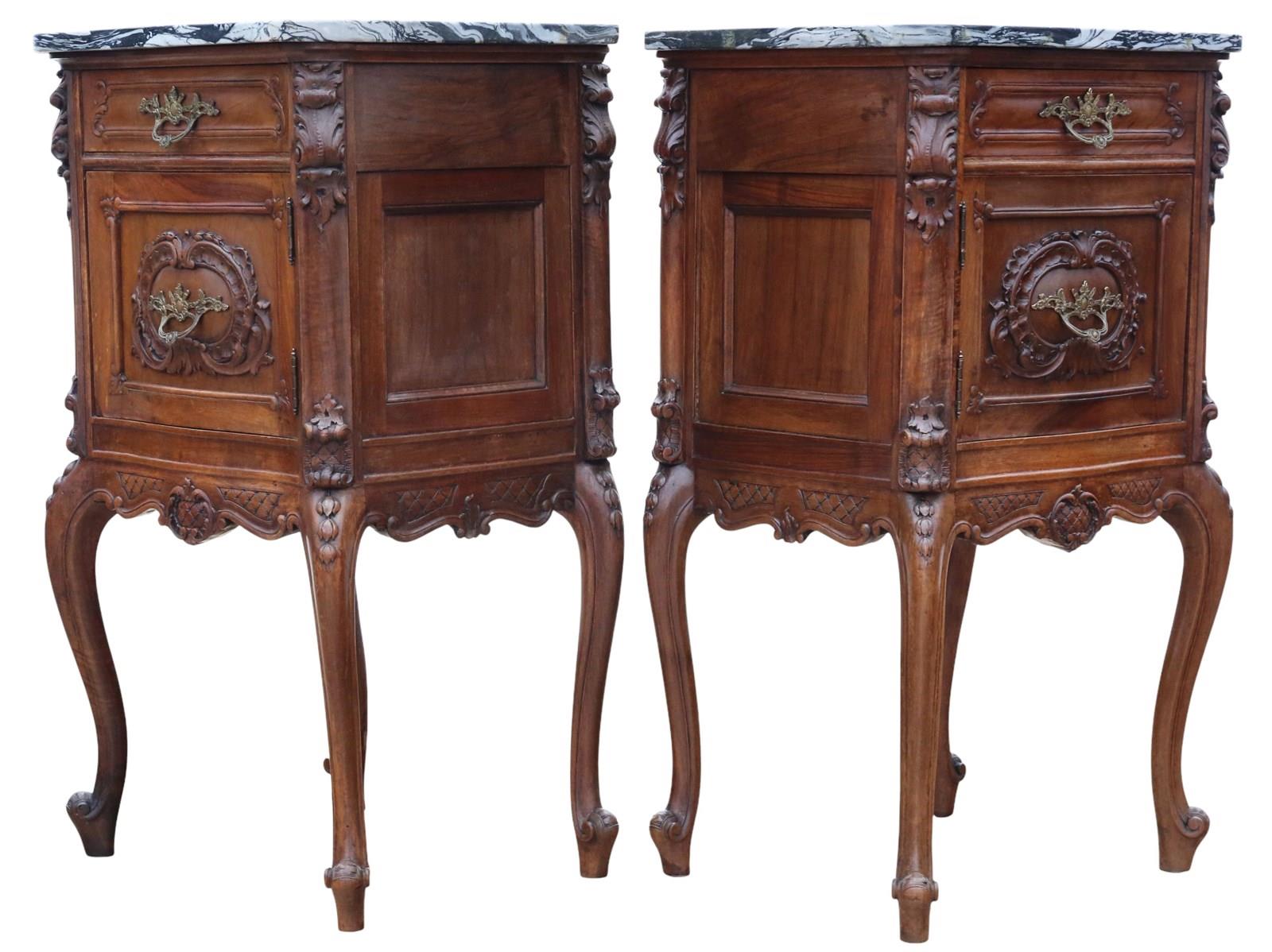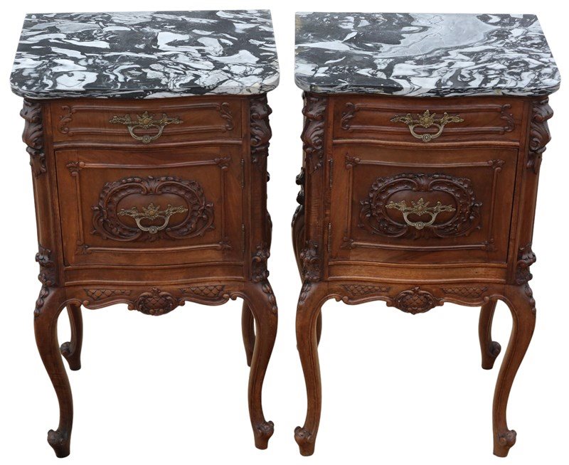 Antique C.1920 Italian Walnut & Marble Bedside Table Cupboards – Fine Quality