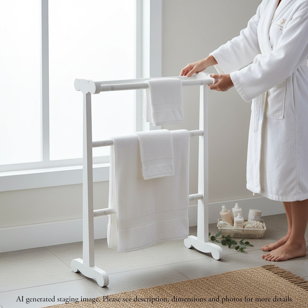 A simple yet elegant antique towel rail with a soft painted finish and timeless decorative appeal.
