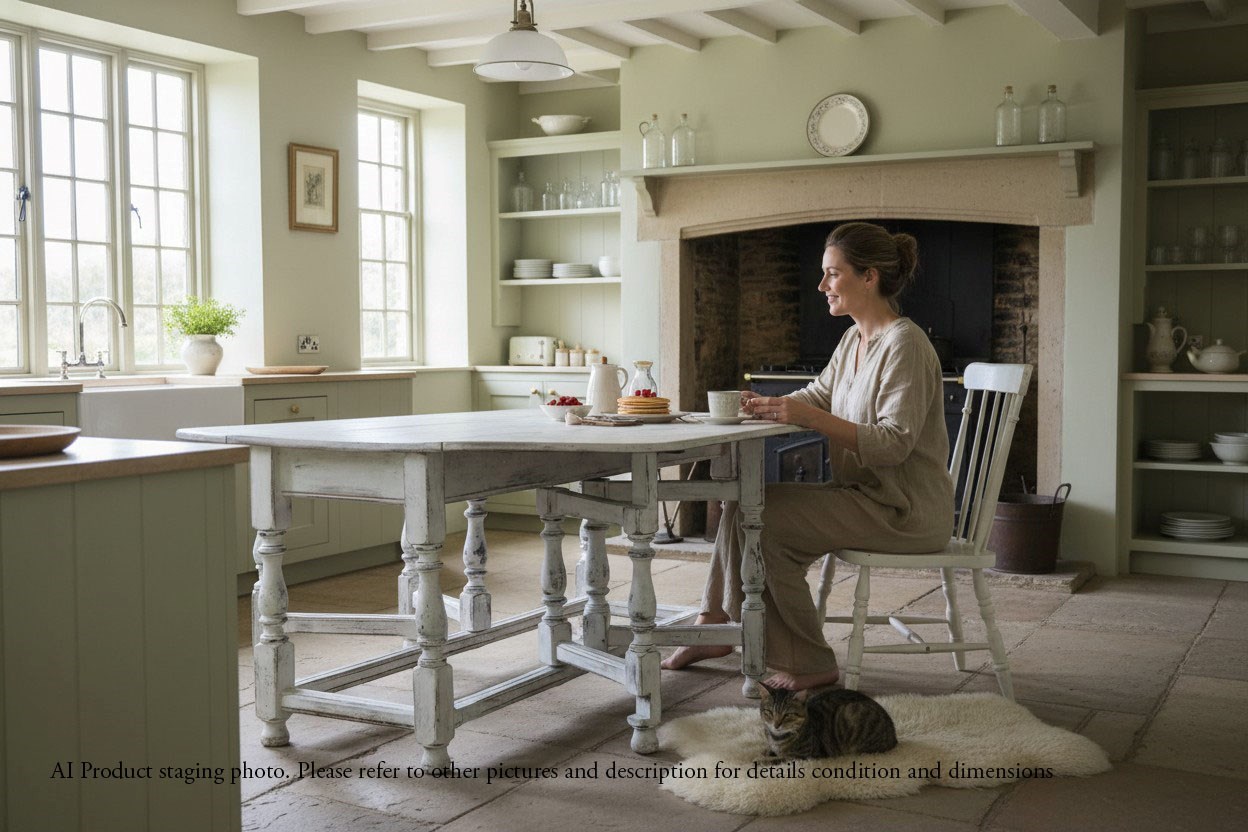 Antique c.1920 Very Large Swedish Drop-Leaf Gateleg Dining Table – Painted Finish