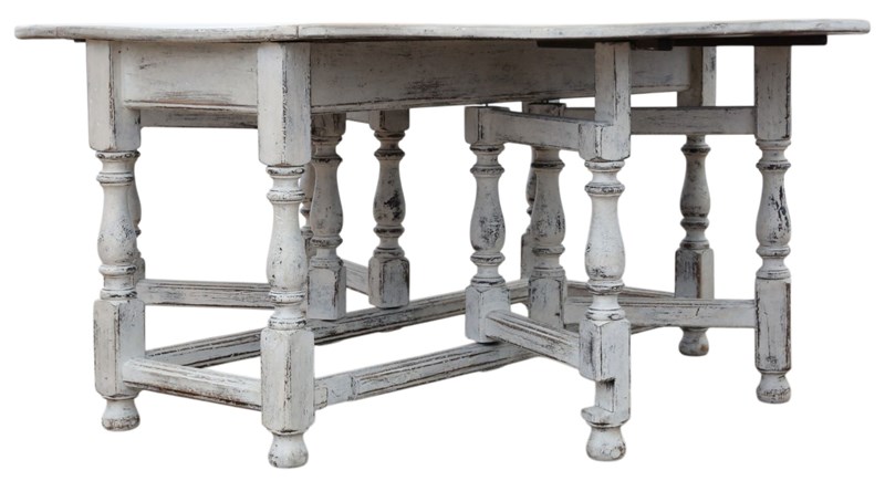 Antique C.1920 Very Large Swedish Drop-Leaf Gateleg Dining Table – Painted