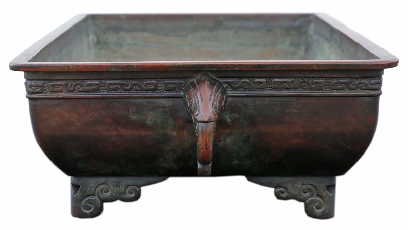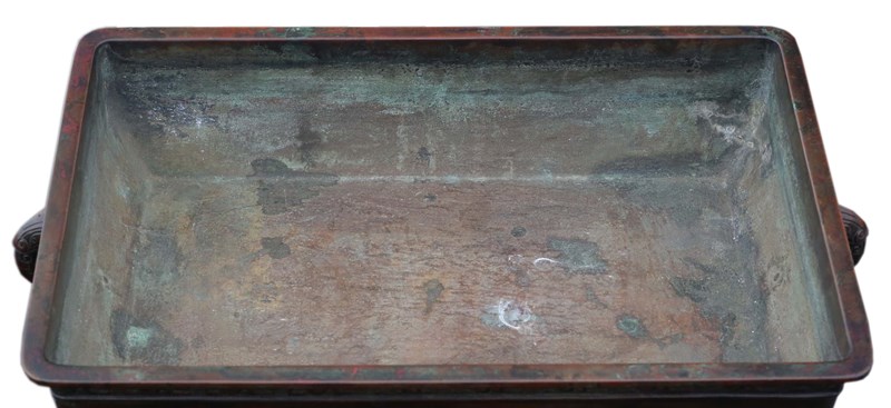 The jardinière displays a beautiful patina and age-related character. While it has minor historic knocks and marks consistent with its age, it remains in very good antique condition overall. Please note it may not be watertight and should be lined if used for live plants.