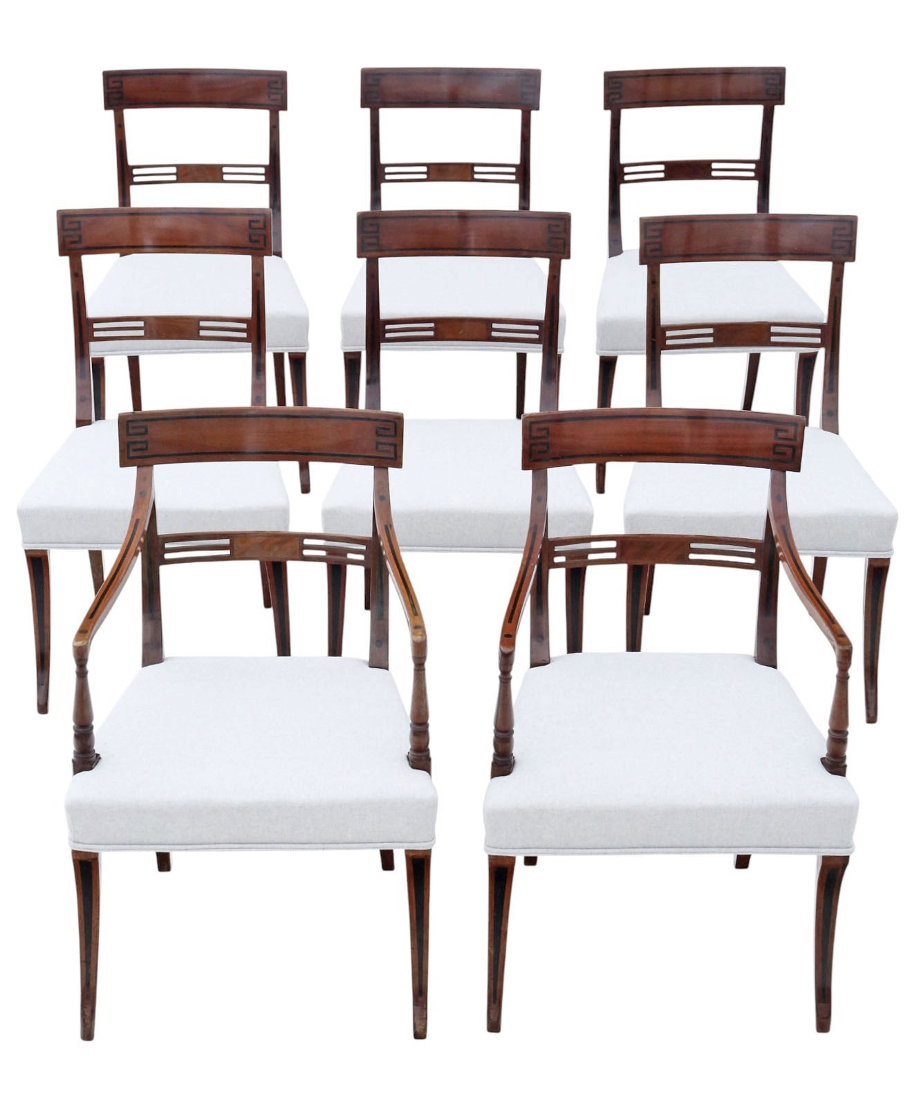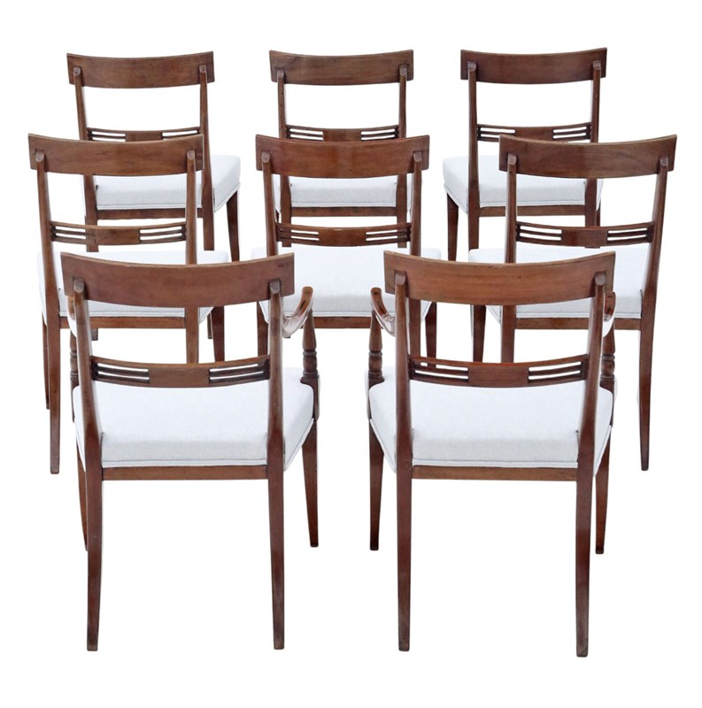 Antique Early 19th Century Georgian Regency Mahogany Dining & Carver Chairs – Set of 8, Fine Quality