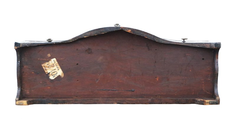In good antique condition overall, showing expected signs of age, including minor historic marks, knocks, repairs, and alterations consistent with functional period furniture. A few historic extinct woodworm holes, treated for good measure. Mahogany lined drawers slide smoothly. Glass has medium to light oxidation with spotting, speckles, sparkles, shadowing, hazing and age related imperfections that add to its charming character, as reflected in the pictures.