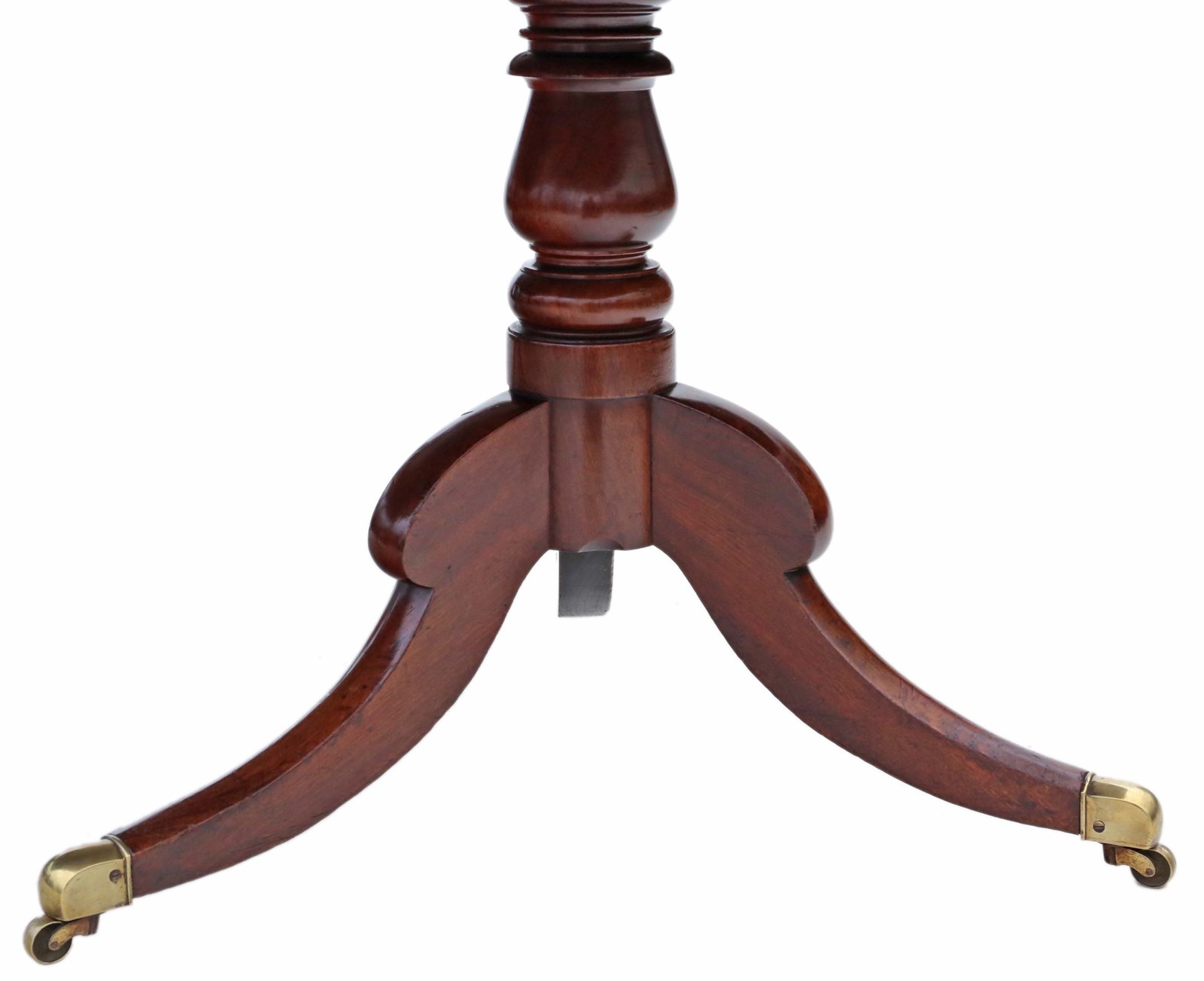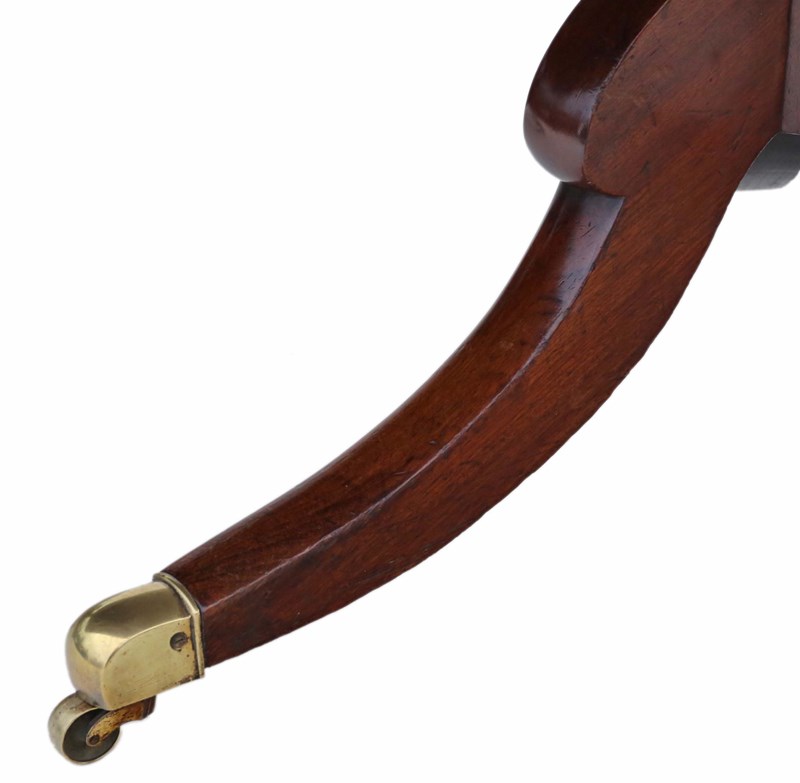 In very good antique condition, the finishes are in good order, with minor historic knocks, marks and imperfections buried beneath generations of polish and wax to form a great patina. A solid and strong piece with no loose joints. There are some extinct woodworm holes in the non-mahogany supporting components underneath the tops; these have been treated for good measure.