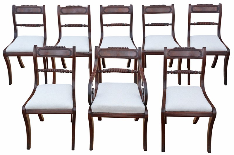 Antique Early 19th Century Georgian Regency Mahogany Dining & Carver Chairs – Set of 8 (7 plus 1), Fine Quality.
