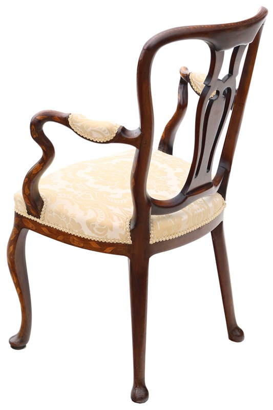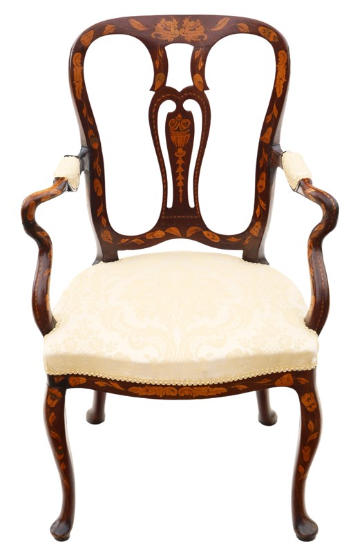 Antique Fine Quality 18Th Century Dutch Marquetry Elbow Chair Armchair