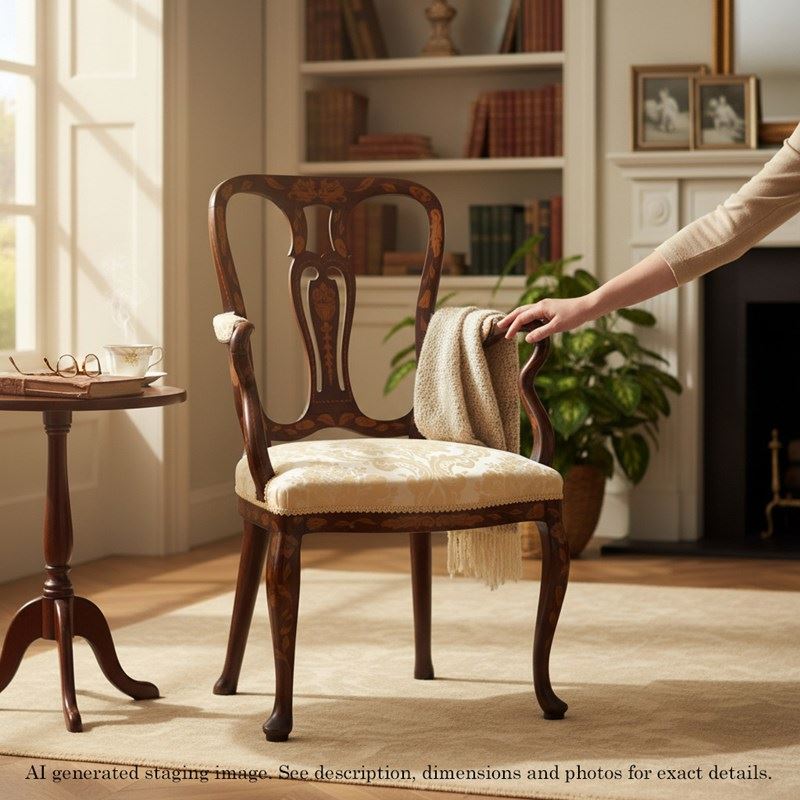 Antique 18th Century Dutch Marquetry Elbow Arm Desk Chair – Fine Quality