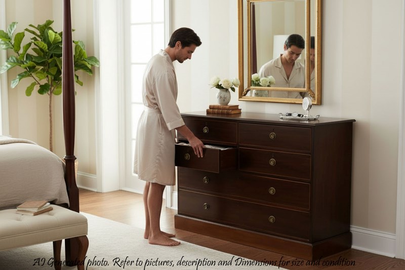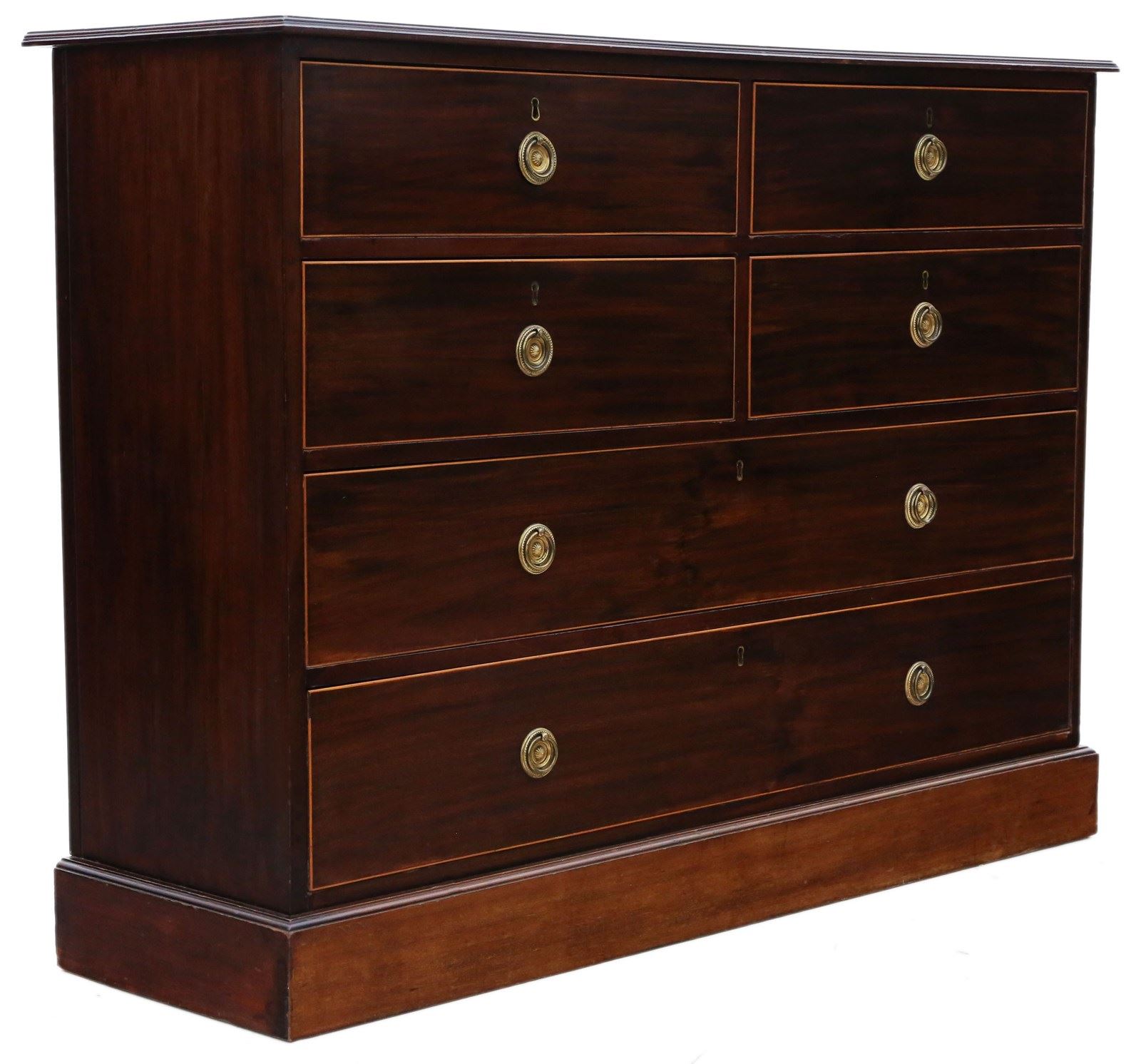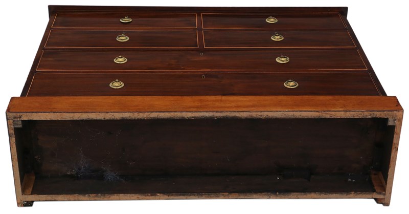 This is a lovely chest with attractive line edge inlay. Rare large size with a shallow depth...ideal for a hallway or a room where the traditional depth would be too much.