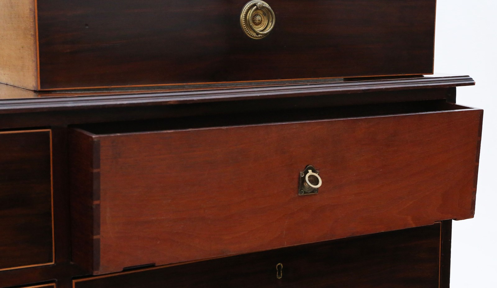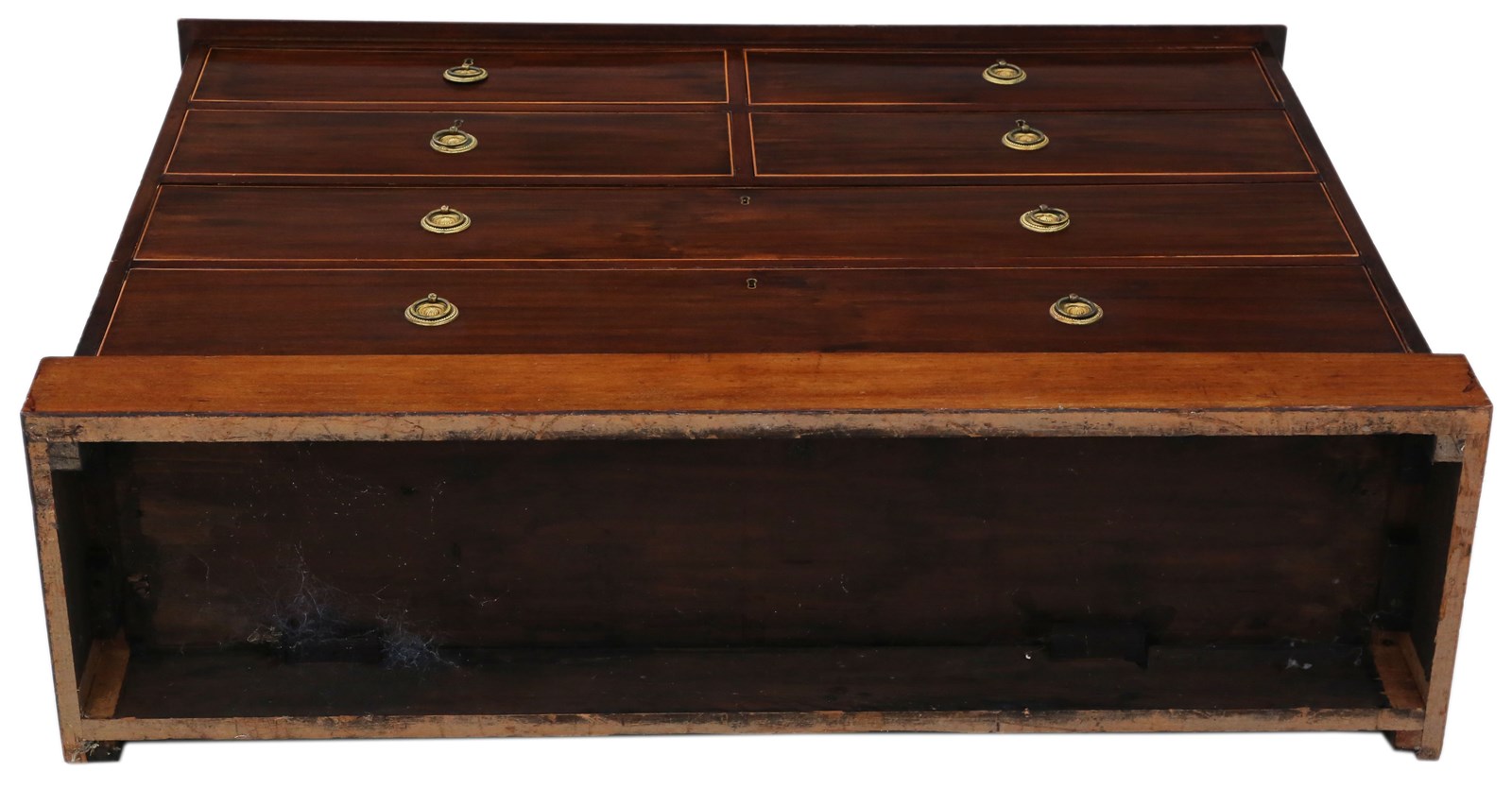 In very good antique condition with historic knocks, marks, cracks, scratches, wear, imperfections, repairs and alterations, as is always the way and to be expected with genuine antique furniture. There are no keys and the locks are consequently untested. Later handles.