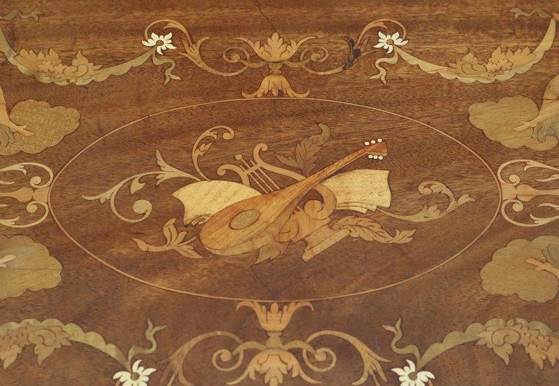 Full of authentic charm and character, this rare decorative find would make a wonderful statement piece in the right setting. Beautifully crafted with detailed marquetry inlays and elegant brass carrying handles, it showcases fine late Victorian workmanship.
