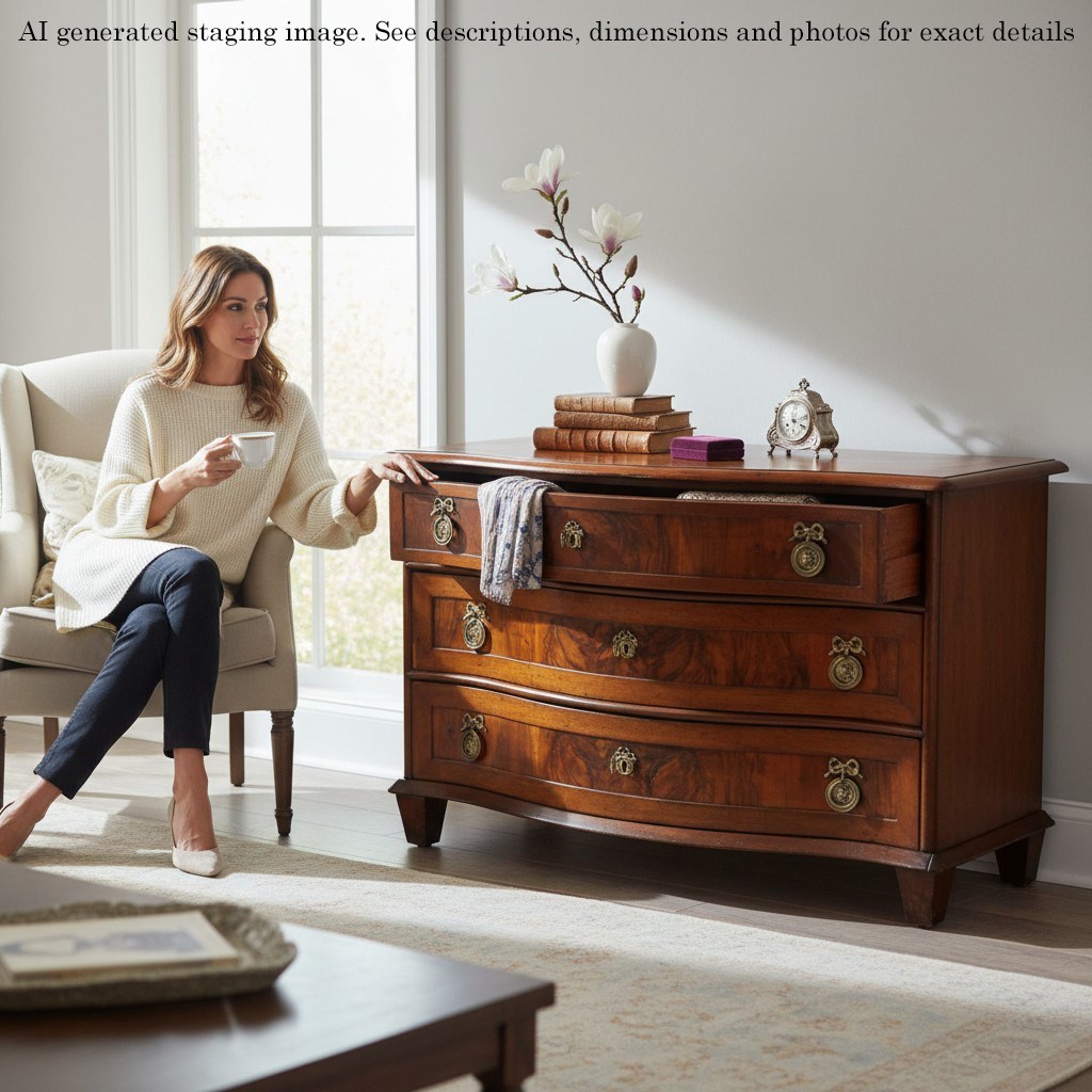 Oak and walnut construction with serpentine front and crossbanded detailing