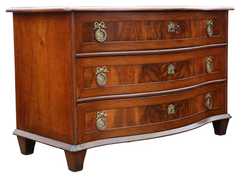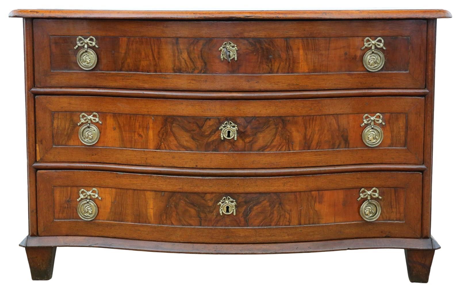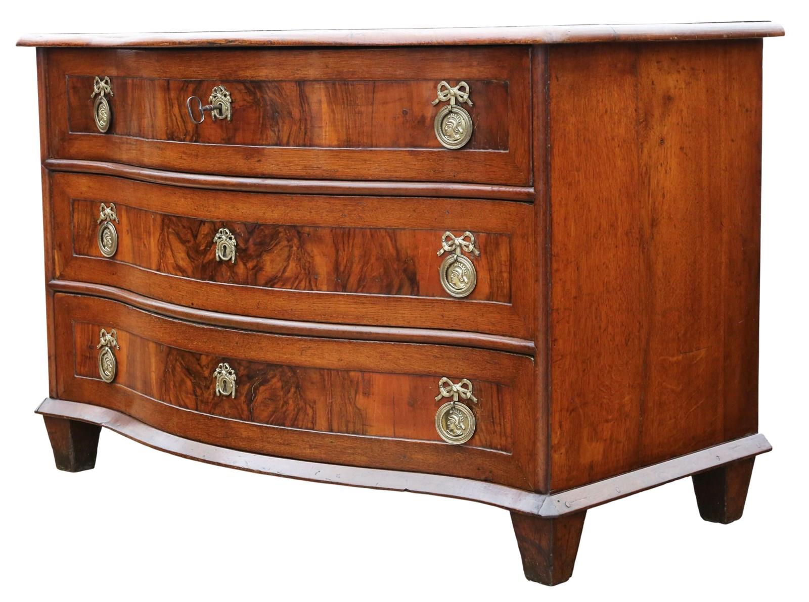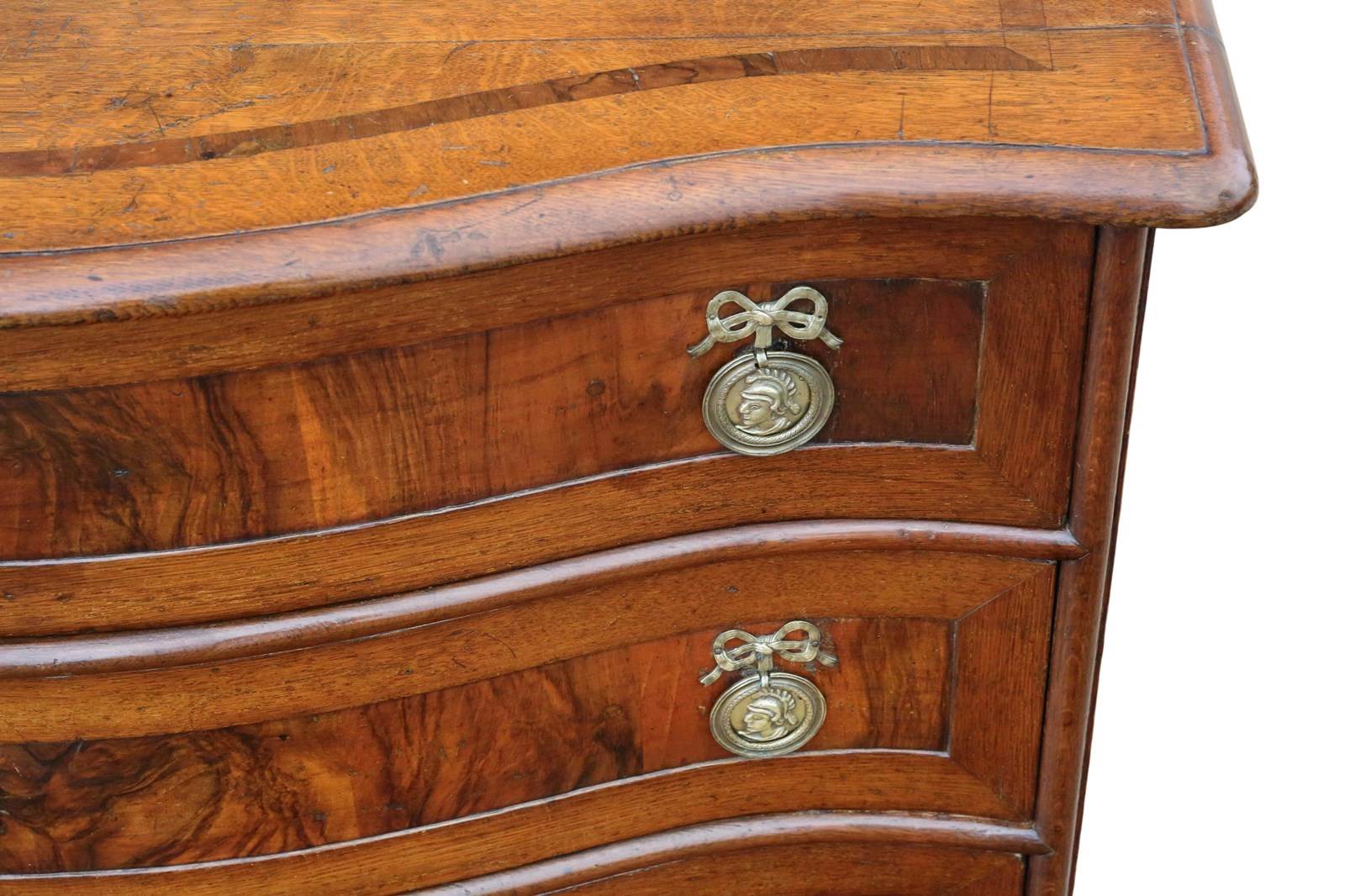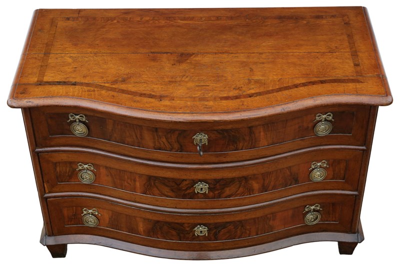 Antique Large 18th Century Continental Oak and Walnut Serpentine Crossbanded Commode / Chest of Drawers – Fine Quality