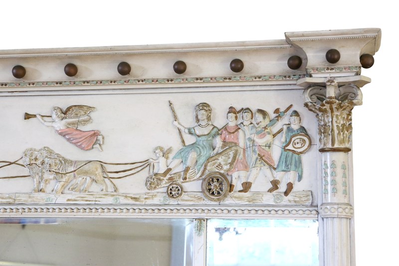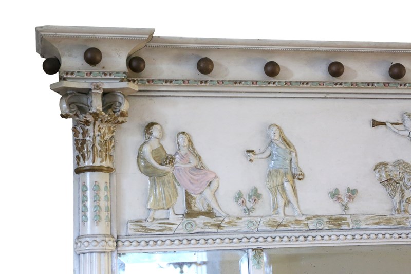 Antique Large Regency 19th Century Overmantle Wall Mirror – Fine Quality Early Painting and Decoration