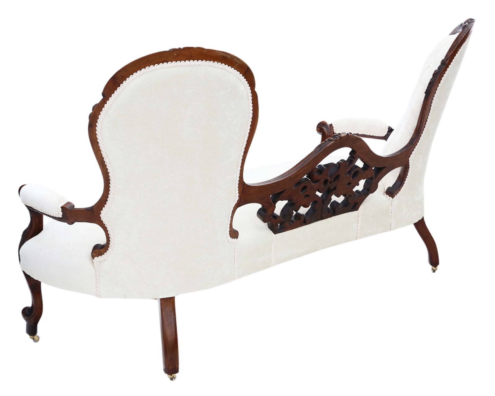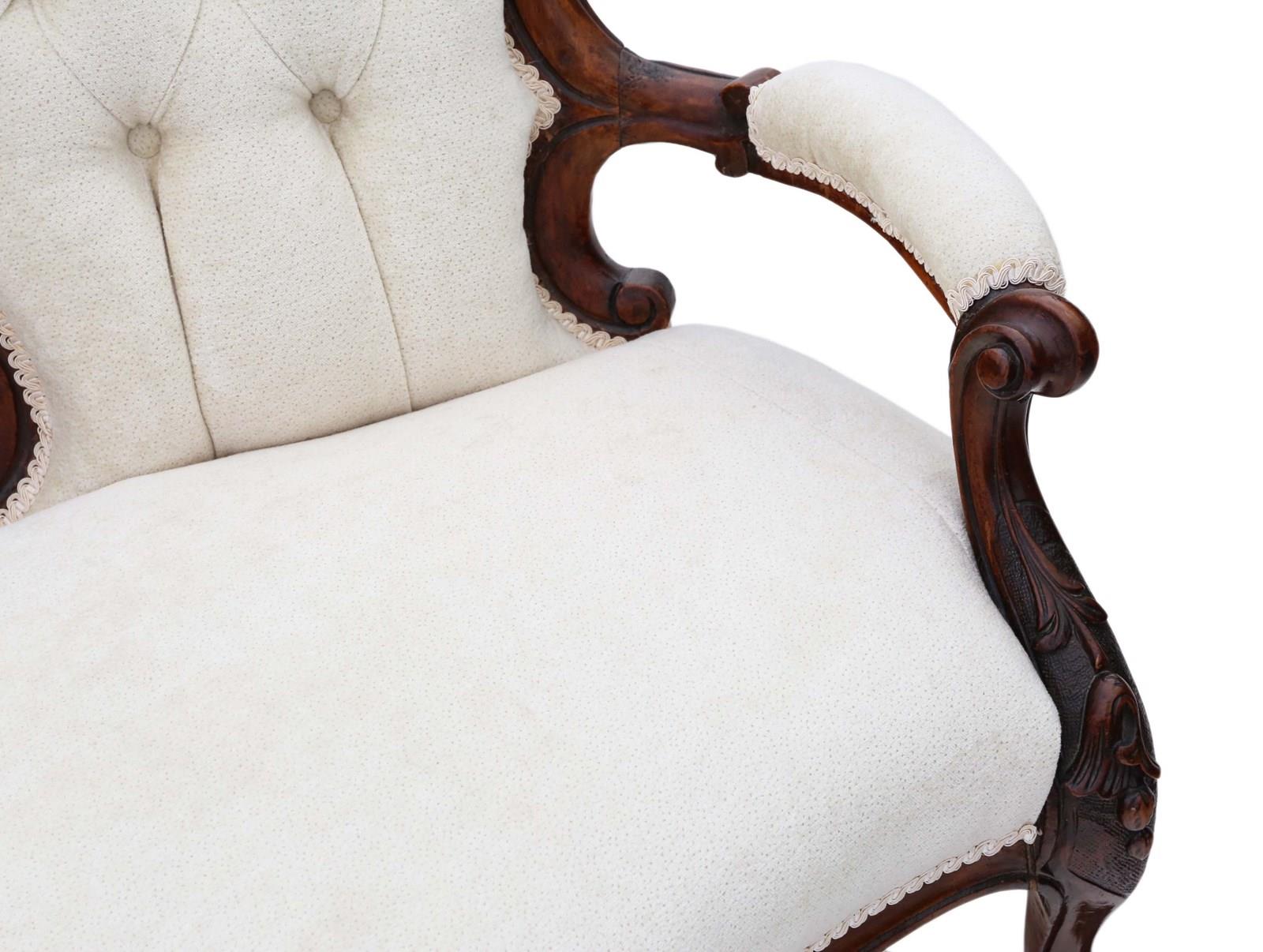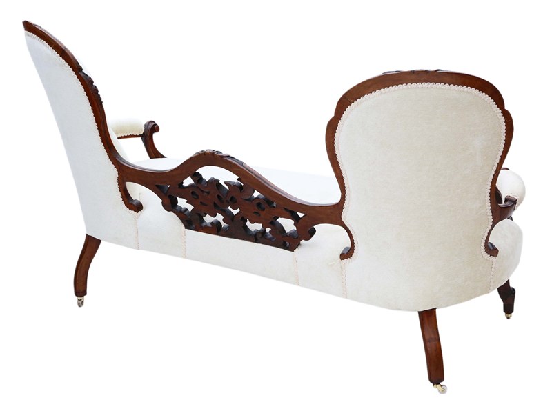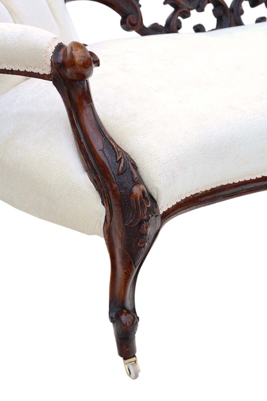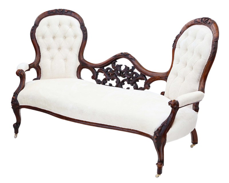 Antique Victorian c.1860 Walnut Chaise Longue / Conversation Sofa – Elegant 19th Century Seating