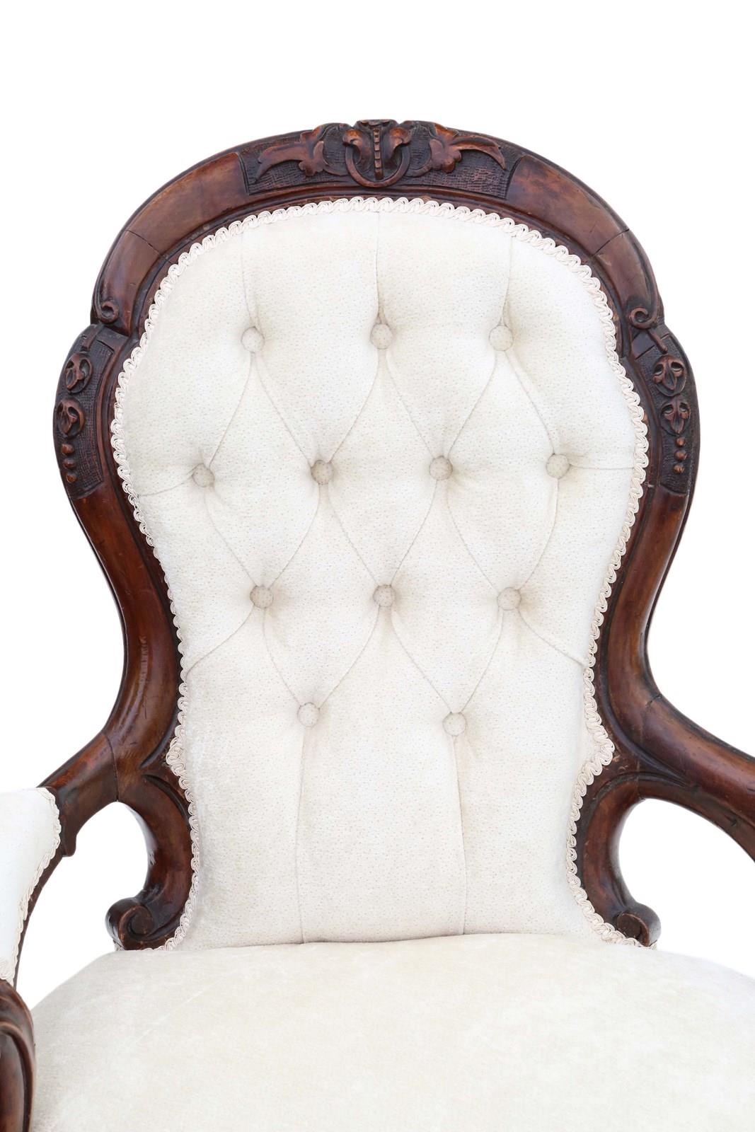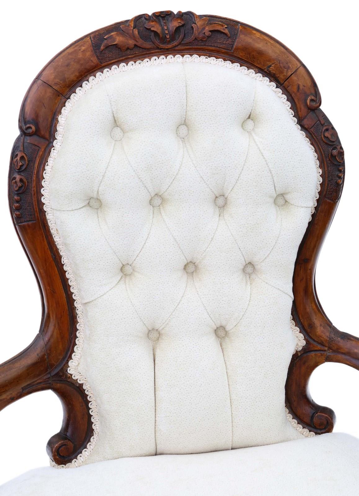 Very good antique condition, showing minor historic marks, light repairs, and a lovely patina consistent with age. Some treated, inactive woodworm holes. A small mark (~1cm x 2cm) on the lower back, likely from glue during reupholstery.