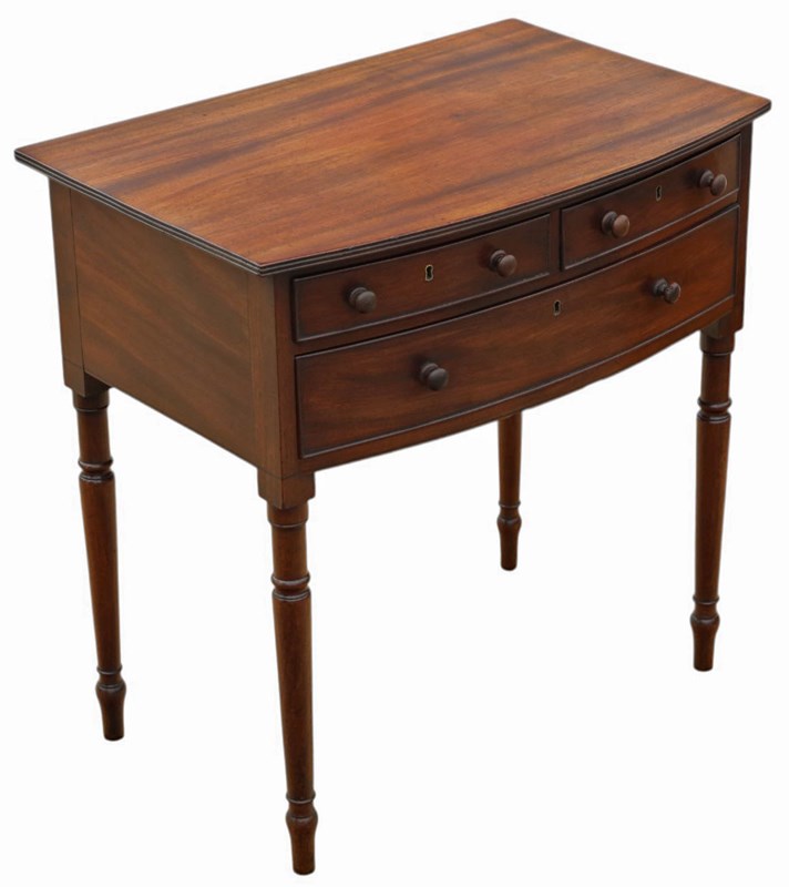 Fine Quality Antique 19Th Century Georgian Bow-Front Mahogany Writing Table
