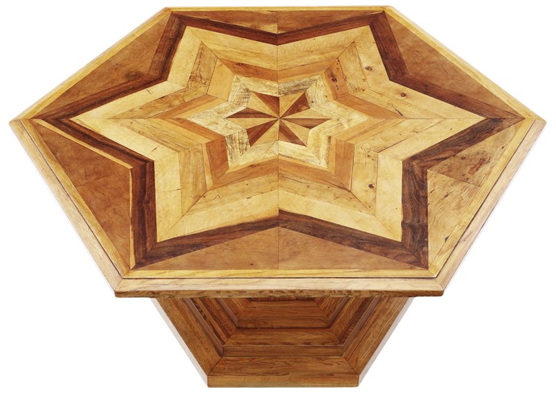 Fine Quality Hexagonal Parquetry Centre Dining Table – Large Statement Display Piece